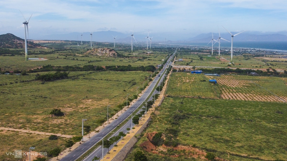 Cánh đồng điện gió gần khu vực quy hoạch dự án điện hạt nhân Ninh Thuận 1.