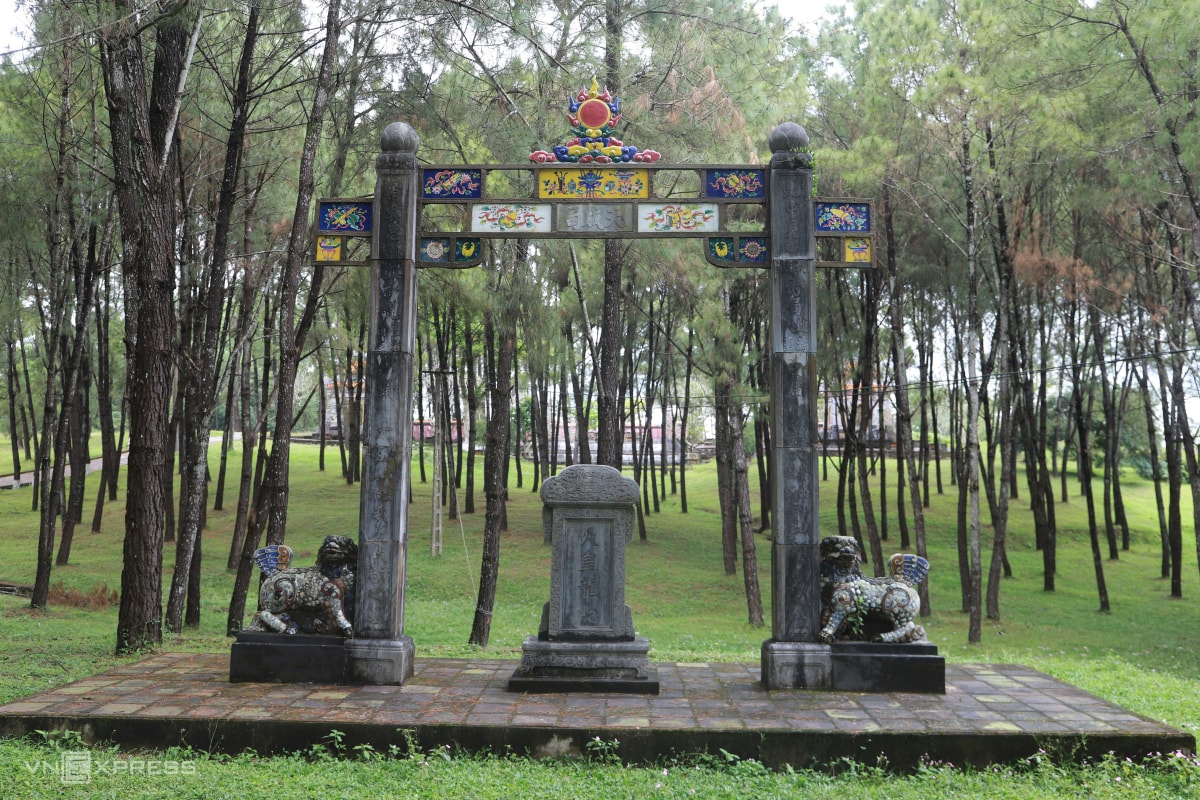 Lăng mộ Kiên Thái Vương Nguyễn Phúc Hồng Cai, thân sinh của vua Hàm Nghi, Đồng Khánh, Kiến Phúc, được bao bọc bởi rừng thông xanh.