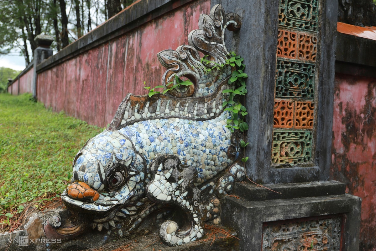 Hai bên bửu thành được đắp nổi hình tượng rồng, cá chép hóa rồng bằng sành sứ.
