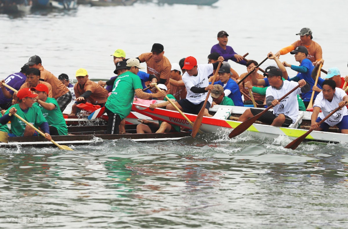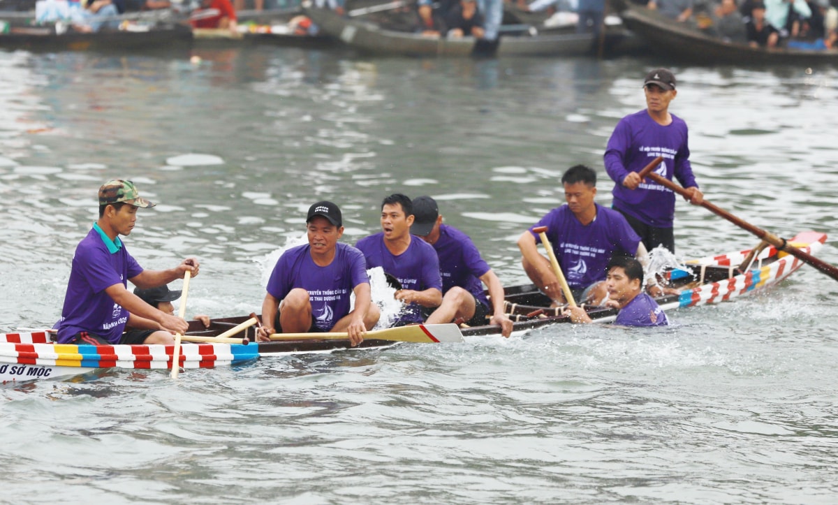 Đội đua đến từ xã Quảng Điền bị chìm khi lộn về trung tâm.