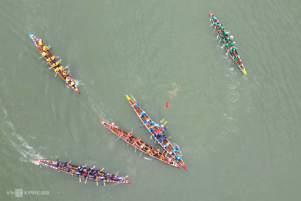 9 đội đua tranh tài quyết liệt ngay từ những mét nước đầu tiên khi lộn vè tre. Theo quy định, tổ chức 9 lượt đua, mỗi lượt các tay chèo phải hoàn thành hai vòng đua, quãng đường hơn 2 km dành cho cả nam và nữ.