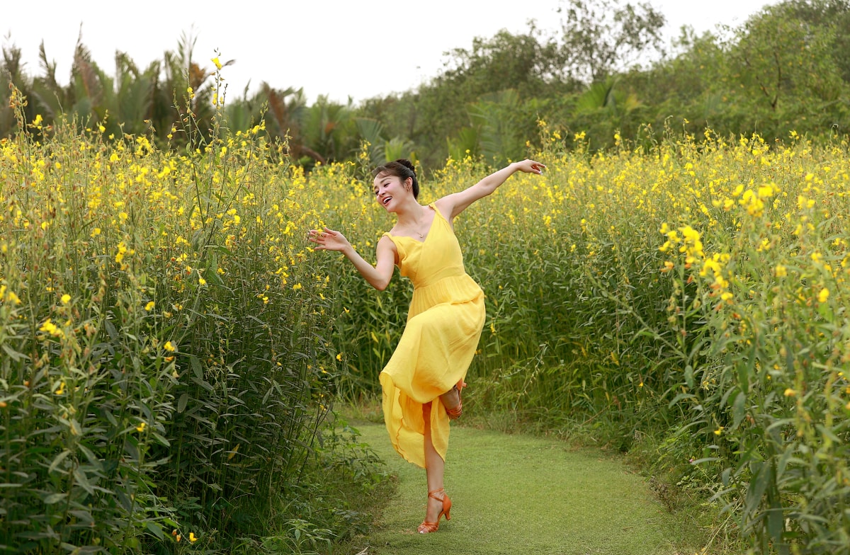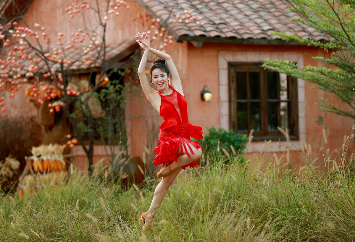 Kiện tướng dancesport Thu Hương thực hiện bộ ảnh với những động tác nhảy múa, đón Tết Bính Ngọ.