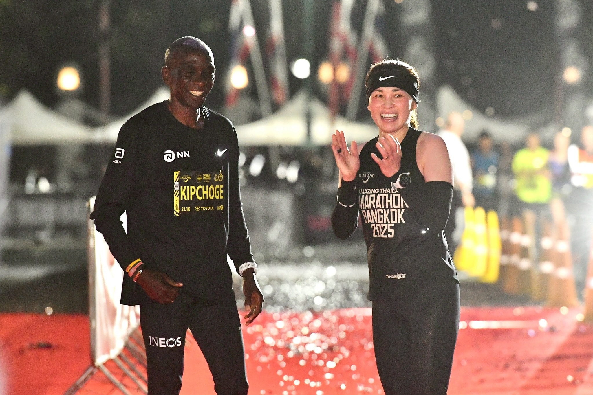 Huyền thoại marathon Eliud Kipchoge chạy cự ly 21km cùng Hoàng hậu Suthida Bajrasudhabimalalakshana tại giải Bangkok Marathon ngày 30/11, với mục đích quảng bá hình ảnh.