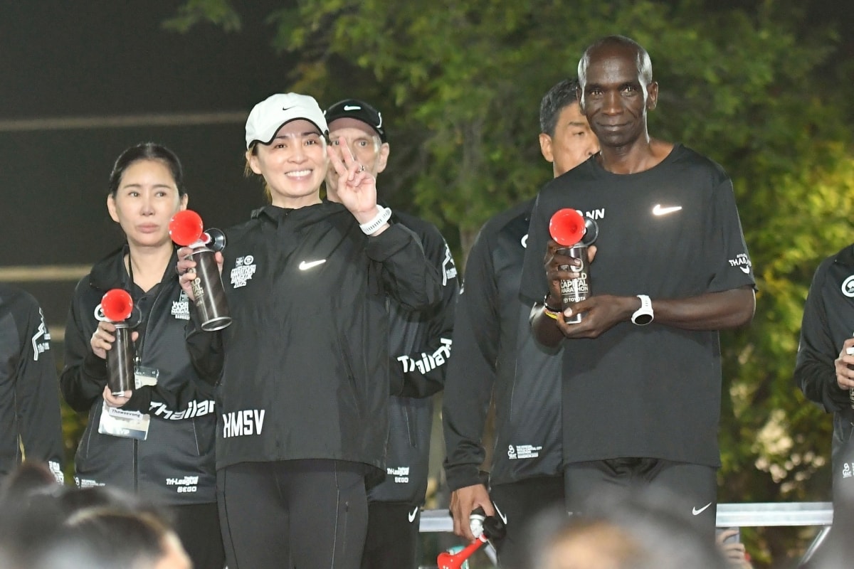 Lúc 2h15 ngày 30/11, tại khu vực gần khách sạn Pathumwan Princess, bà Suthida có mặt ở vạch xuất phát, thực hiện nghi thức khai cuộc và bắt đầu chặng half marathon, cùng VĐV huyền thoại Eliud Kipchoge. Khoảnh khắc ngôi sao từng hai lần phá kỷ lục thế giới sải bước bên cạnh Hoàng hậu khiến không khí đường chạy thêm phần sôi động.