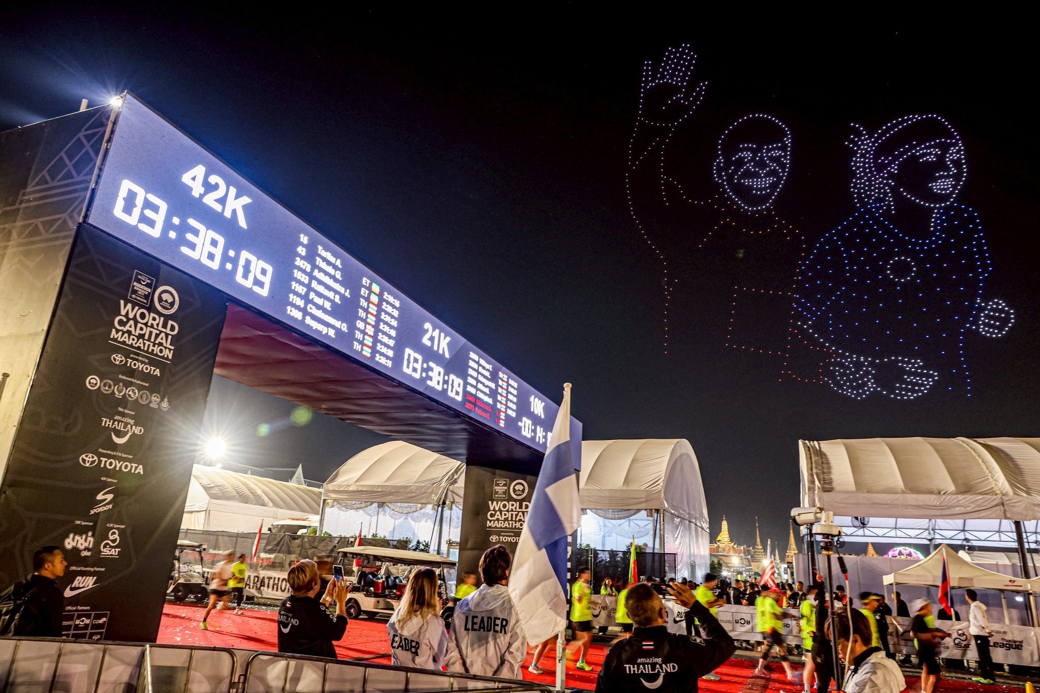 Trước khi Bangkok kịp tỉnh hẳn sau màn đêm, các tuyến phố trung tâm đã nhộn nhịp bước chân và tiếng hò reo của hơn 40.000 VĐV tham gia Bangkok Marathon, sự kiện còn có tên gọi khác là Amazing Thailand. Sự xuất hiện của Hoàng hậu Suthida trên đường chạy tạo điểm nhấn đặc biệt cho kỳ thứ tám của giải chạy vốn được xem là hoạt động quảng bá du lịch lớn của Thái Lan.