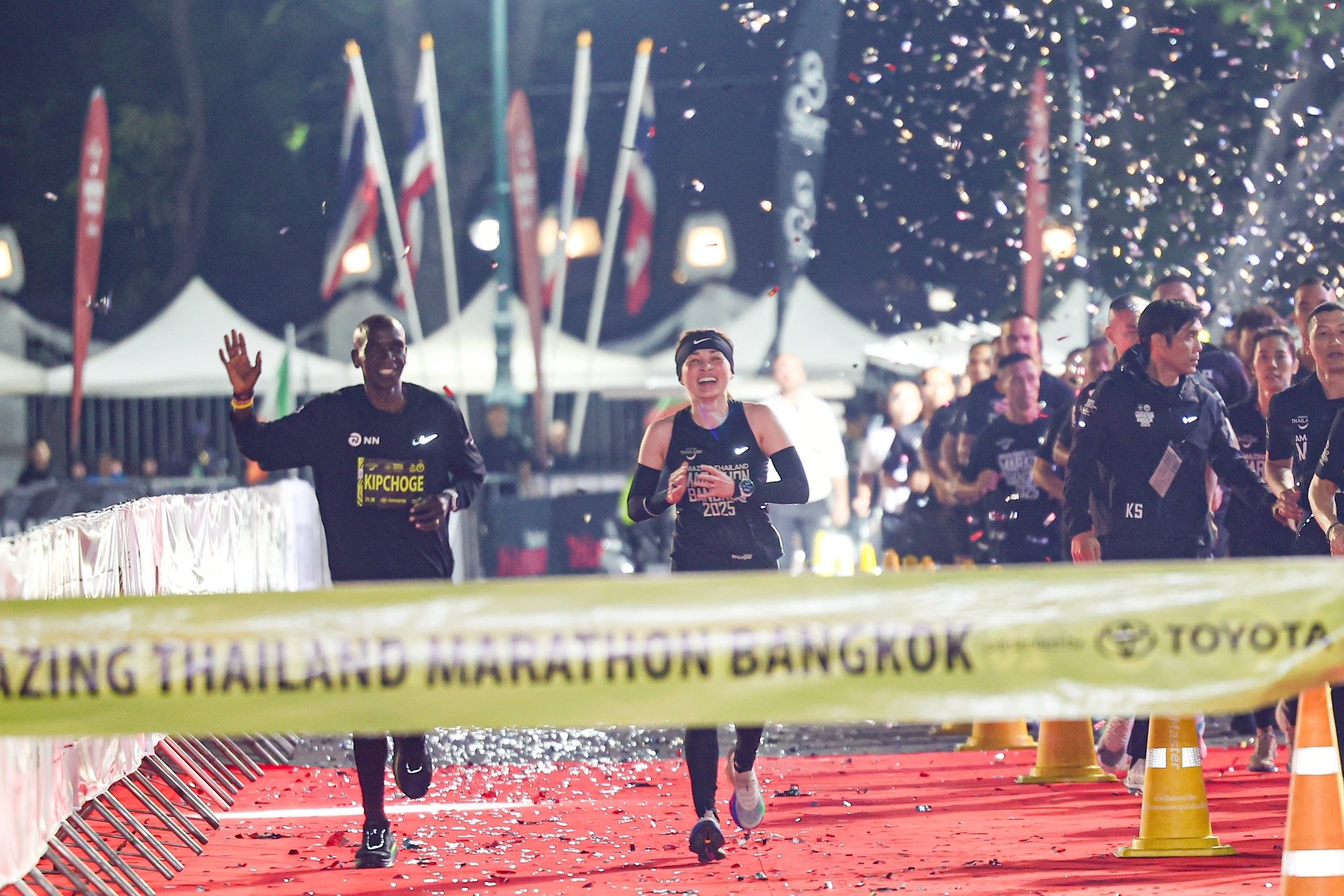 Kipchoge dự giải với trao vai trò đại sứ để quảng bá cho Thái Lan như một điểm đến cho thể thao, du lịch và văn hóa của chính quyền quốc gia Đông Nam Á này. Do tham dự giải với vai trò quảng bá, Kipchoge không đặt nặng vấn đề thành tích. Runner Kenya vừa chạy vừa trò chuyện với Hoàng hậu Suthida, cũng như vui vẻ vẫy tay, chào hỏi và giao lưu với người hâm mộ.Khi mặt trời vừa lên, Kipchoge cùng Nữ hoàng hoàn thành chặng đường tại Sanam Luang, với thời gian 2 giờ 13 phút 40 giây. Thành tích không phải điểm nhấn duy nhất, mà tinh thần gắn kết giữa các VĐV đến từ nhiều quốc gia, sự cổ vũ từ hai bên đường và cảnh quan đặc trưng của Bangkok mới là điều tạo nên sức hút cho sự kiện.