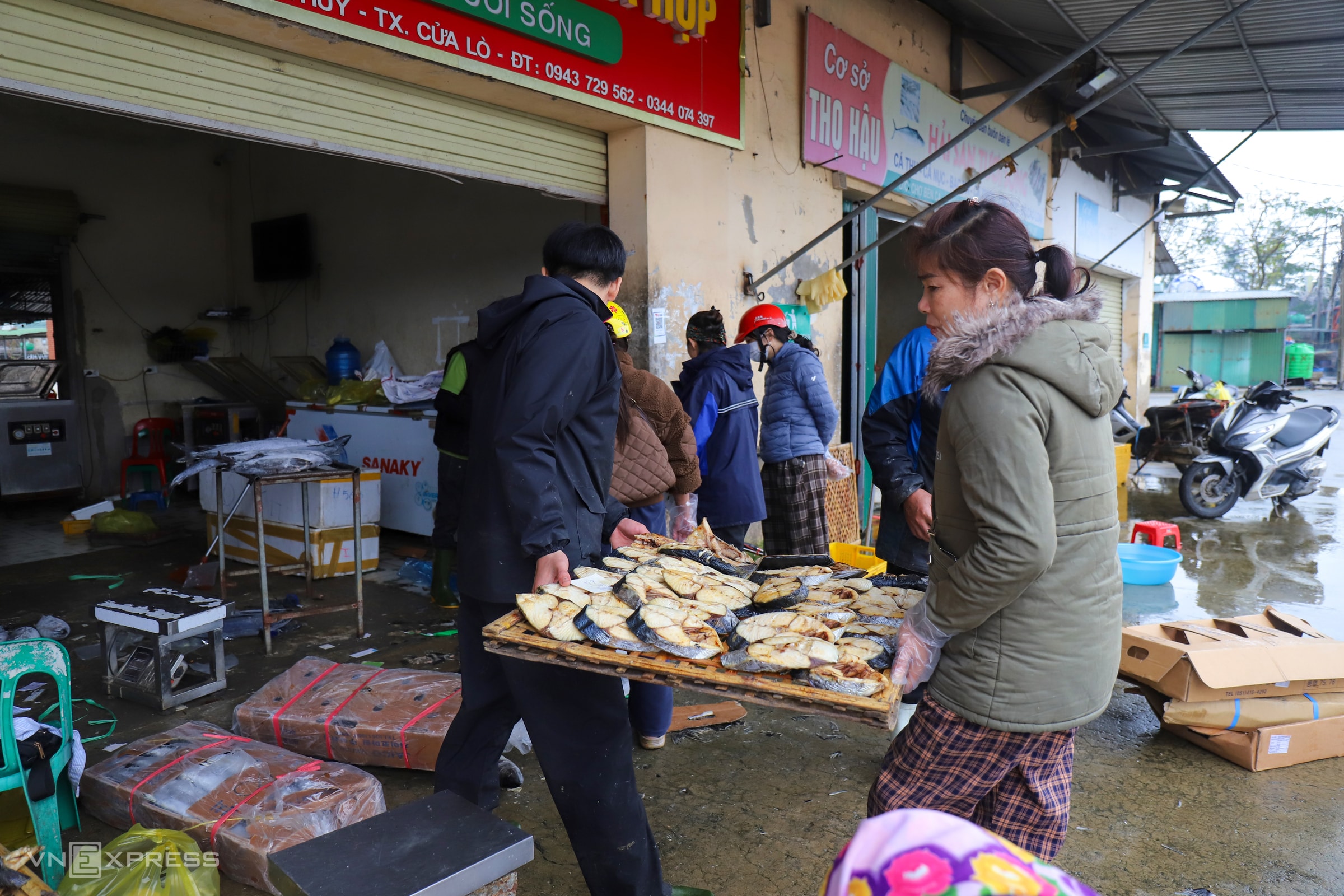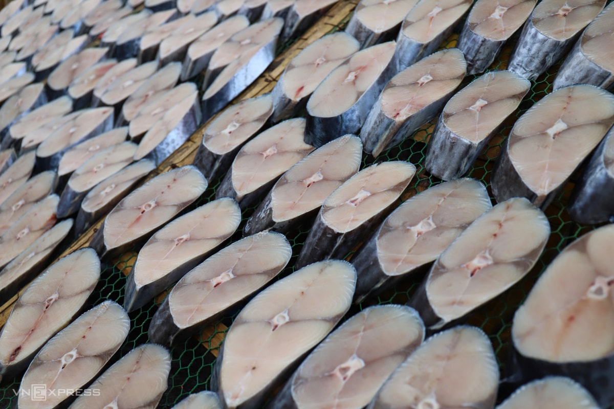 Trong các loại hải sản, cá thu có giá trị kinh tế cao nhất, trở thành mặt hàng chủ lực của nhiều hộ chế biến ở phường Cửa Lò mỗi dịp Tết.