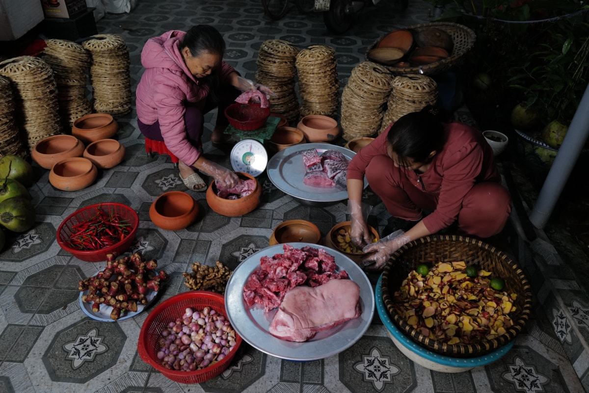 Những ngày giáp Tết, làng nghề kho cá Nhân Hậu, xã Nam Lý, tỉnh Ninh Bình luôn rực lửa suốt ngày đêm, mỗi hộ bán hàng trăm niêu cá, cả gia đình thay nhau thức canh bếp.