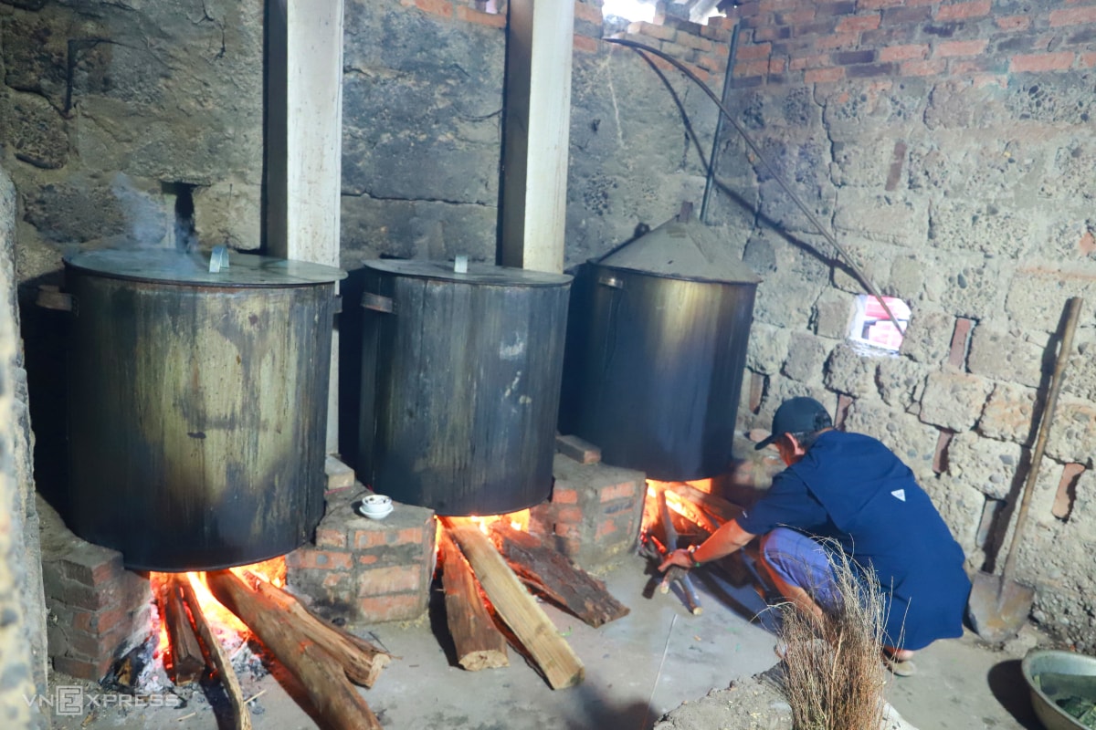 Người dân làng An Truyền hối hả gói bánh chưng, bánh tét phục vụ người dân cúng dịp Tết Nguyên đán Bính Ngọ.
