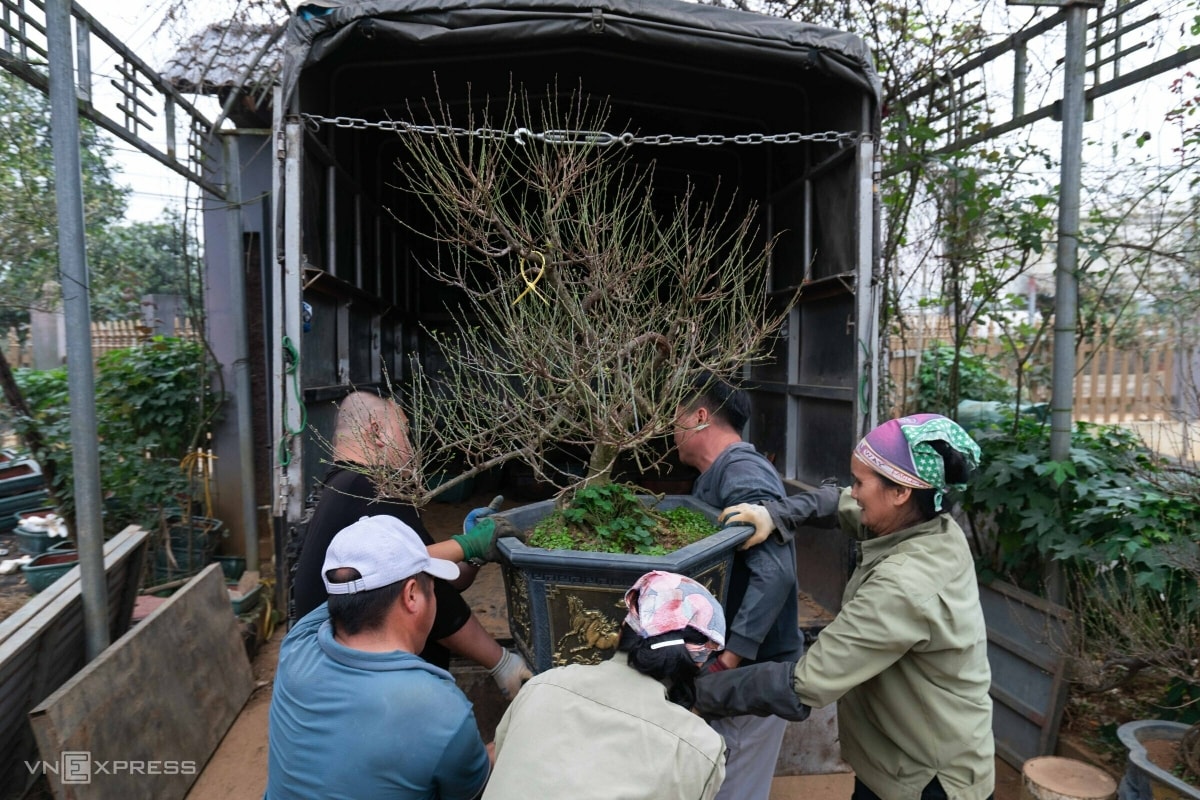 Hàng năm, bắt đầu tháng chạp, gia đình ông Thơ lại đưa những cây nhất chi mai đẹp nhất xuống trung tâm Thủ đô bán. Vài ngày một chuyến, xe chở cây từ xã Suối Hai xuống nội đô, mỗi chuyến khoảng 10 cây lớn, nặng khoảng 100 kg/cây, cần 4-5 người khiêng.