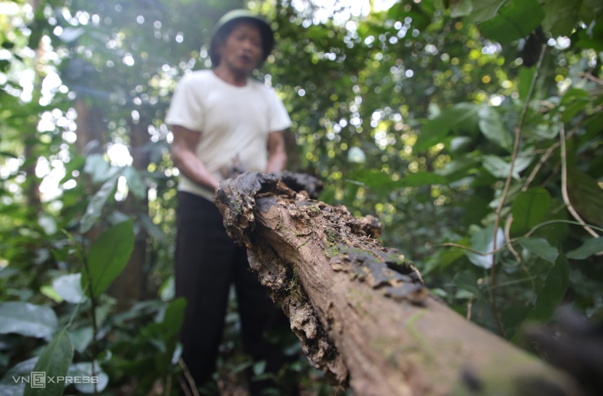 Ông Đô chặt tỉa từng cây bụi trong rừng giúp cây lim vươn lên. Hơn 30 năm qua, thường xuyên qua lại trong rừng, ông nhớ từng vị trí cây lim. "Nhiều lần bắt gặp người dân chặt củi, tôi nhắc họ không được chặt cây sống, còn muốn lấy củi thì chặt những cây khô", ông kể.