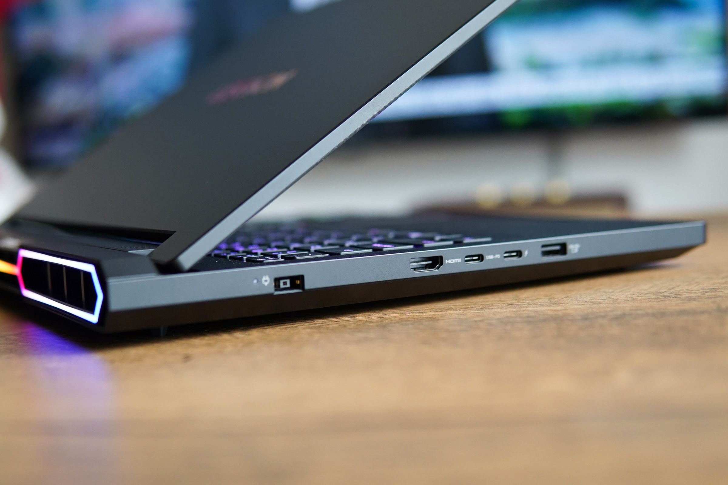 Một thay đổi lớn về thiết kế trên mẫu laptop này là cách bố trí cổng kết nối. Thay vì tập trung phần lớn ra cạnh sau như nhiều thế hệ trước, hãng đã đưa hầu hết cổng sang hai cạnh bên, nhường chỗ cho phần tản nhiệt và LED trang trí ở phía sau.