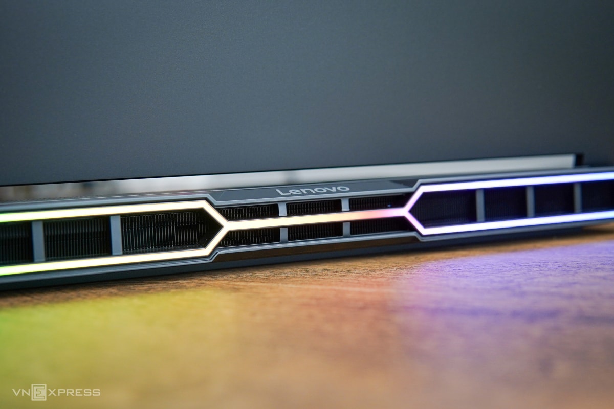 Hệ thống tản nhiệt là một trong những yếu tố định hình rõ nhất cá tính của máy. Sản phẩm của Lenovo sử dụng điểm này như một yếu tố trang trí với cụm tản nhiệt cỡ lớn kèm đèn bao xung quanh.