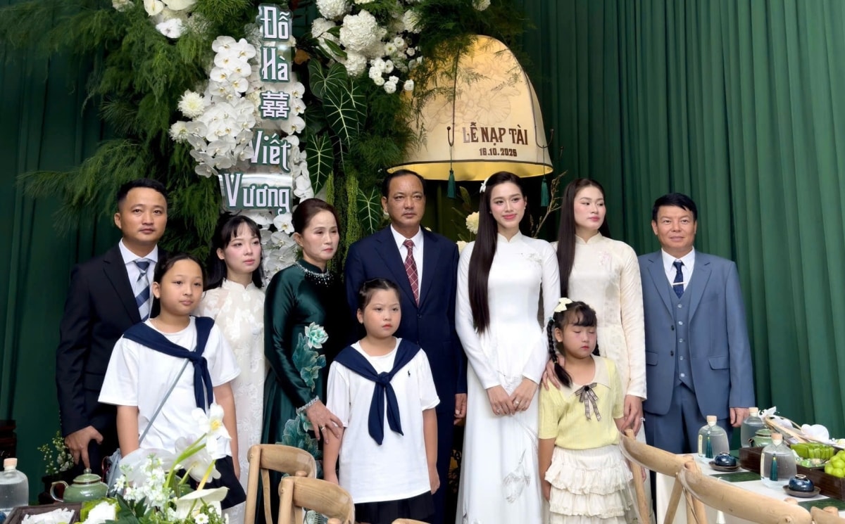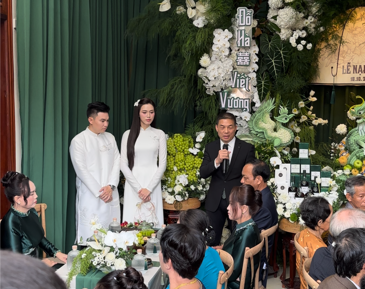 Đỗ Hà sánh đôi chồng trong lễ ăn hỏi