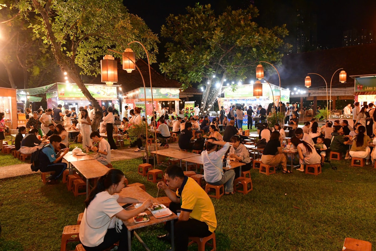 Cô Trương Tiến Phương Mai (phường Thông Tây Hội) cùng nhóm bạn đã có mặt từ 16h để trải nghiệm trọn vẹn không khí lễ hội từ chiều đến tối. Cô Mai cho biết đây là năm thứ ba cả nhóm cùng tham dự vì yêu thích mô hình, ý nghĩa của sự kiện. Ngoài ra công tác tổ chức chuyên nghiệp từ khâu bán vé đến hướng dẫn, phục vụ, trải nghiệm, giải trí đều được sắp xếp bài bản, thiết kế như một hành trình xuyên Việt cũng là điểm cộng lớn khiến họ muốn trở lại đây.