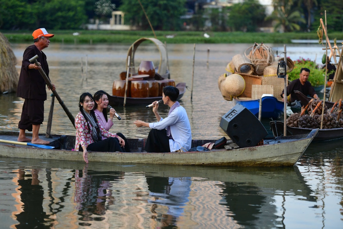Chợ nổi "trên bến dưới thuyền" với các đặc sản trái cây vùng miền, gạo, đậu, bắp, khoai, kẹo, bánh tráng Mỹ Lồng, bánh phồng Sơn Đốc... Các nghệ sĩ đối giao duyên diễn ra song song góp phần tạo không khí sôi động, náo nhiệt.