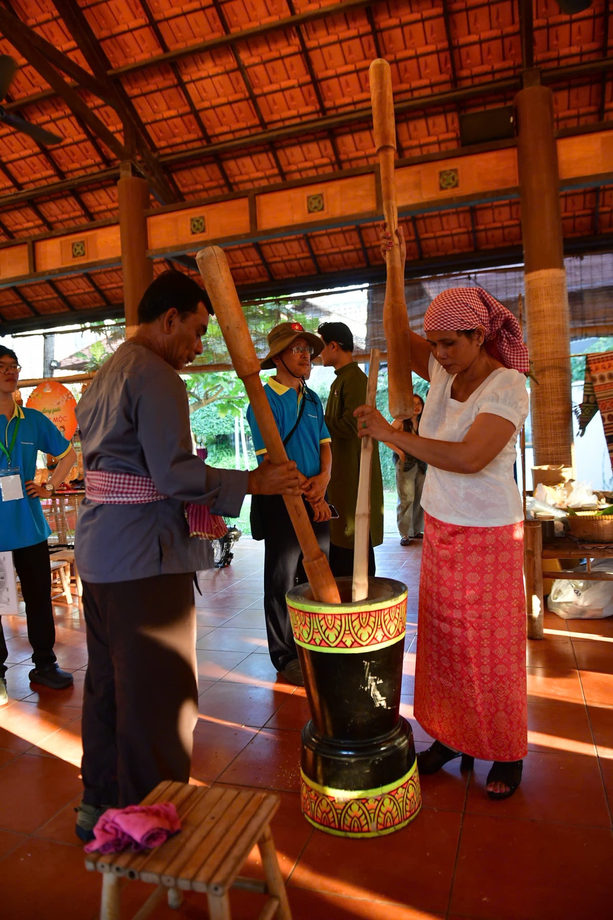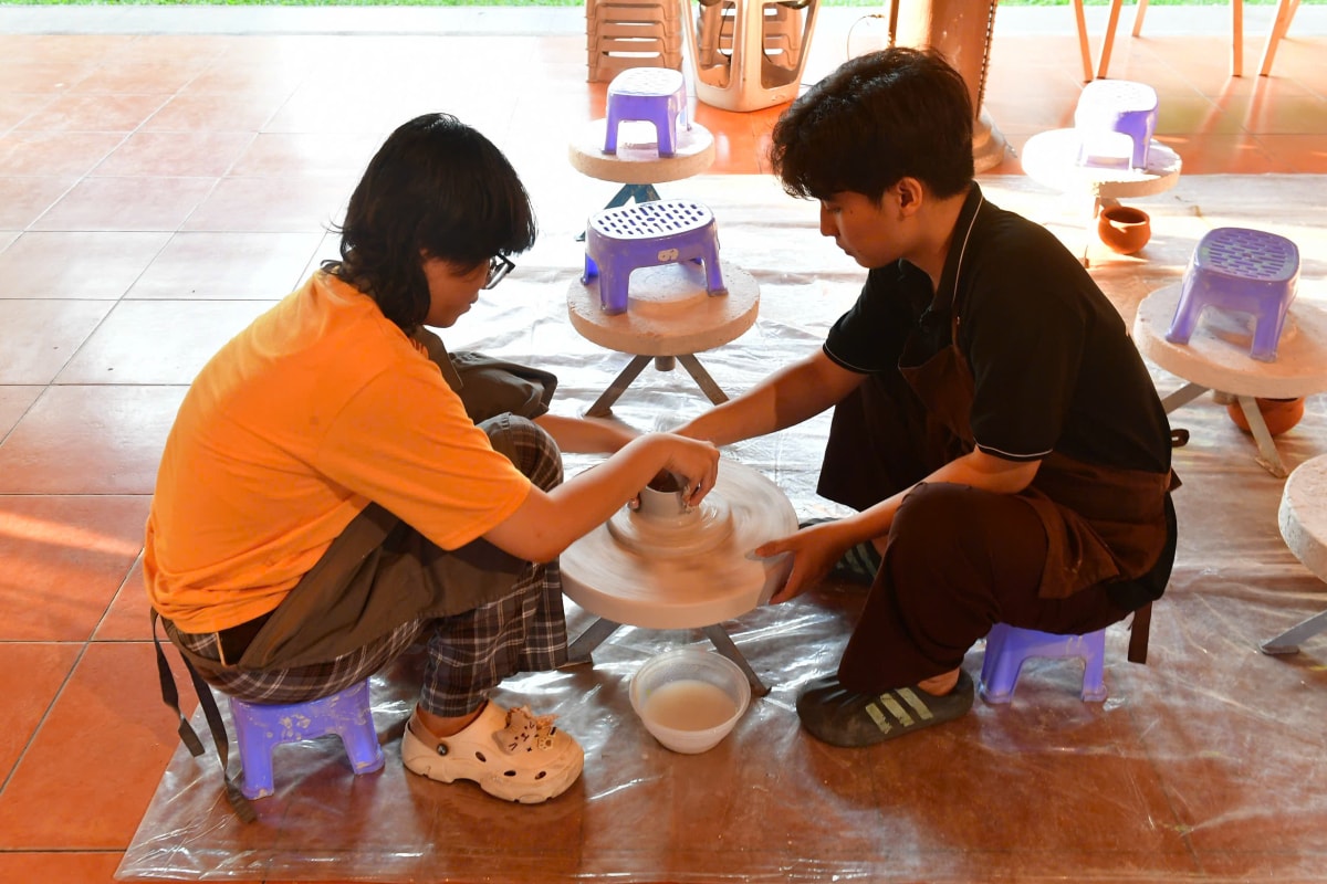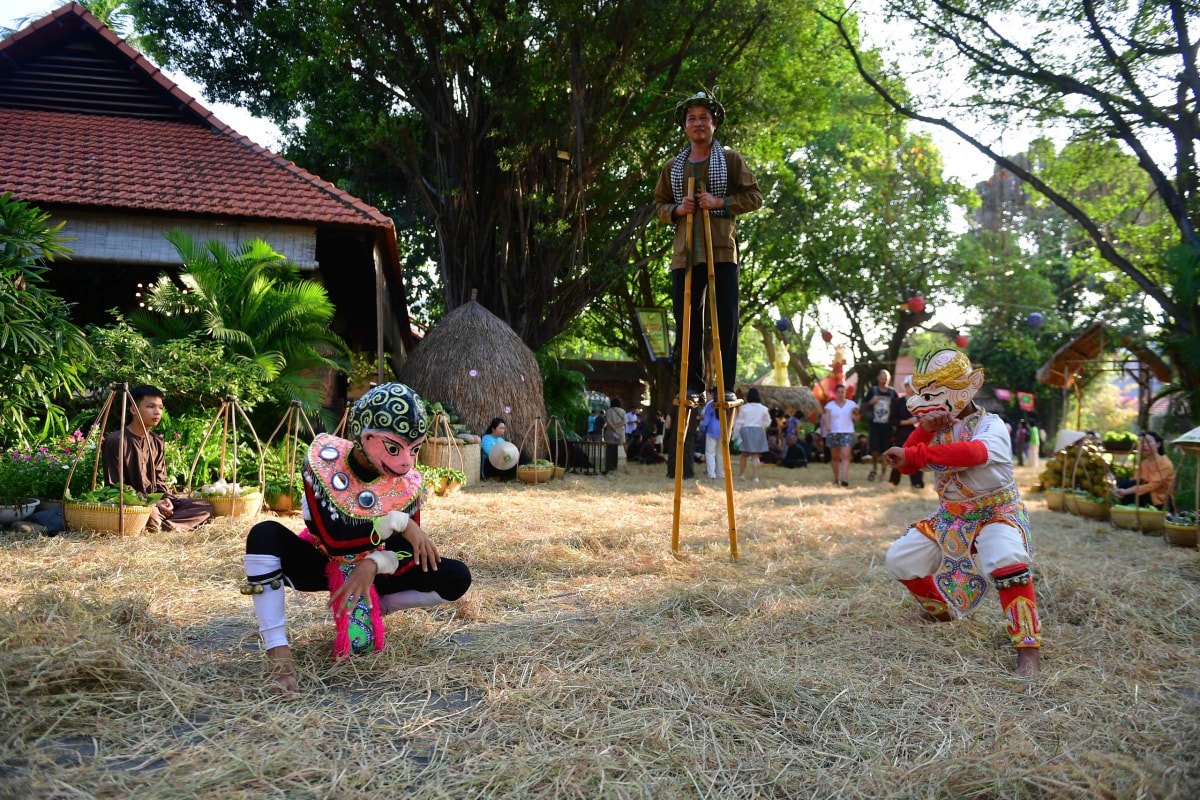 Nhiều làng nghề thủ công cũng được tái hiện ngay tại sự kiện, mang đến trải nghiệm tương tác cho du khách như thử làm gốm, thử gói bánh tét, giã cốm dẹp...