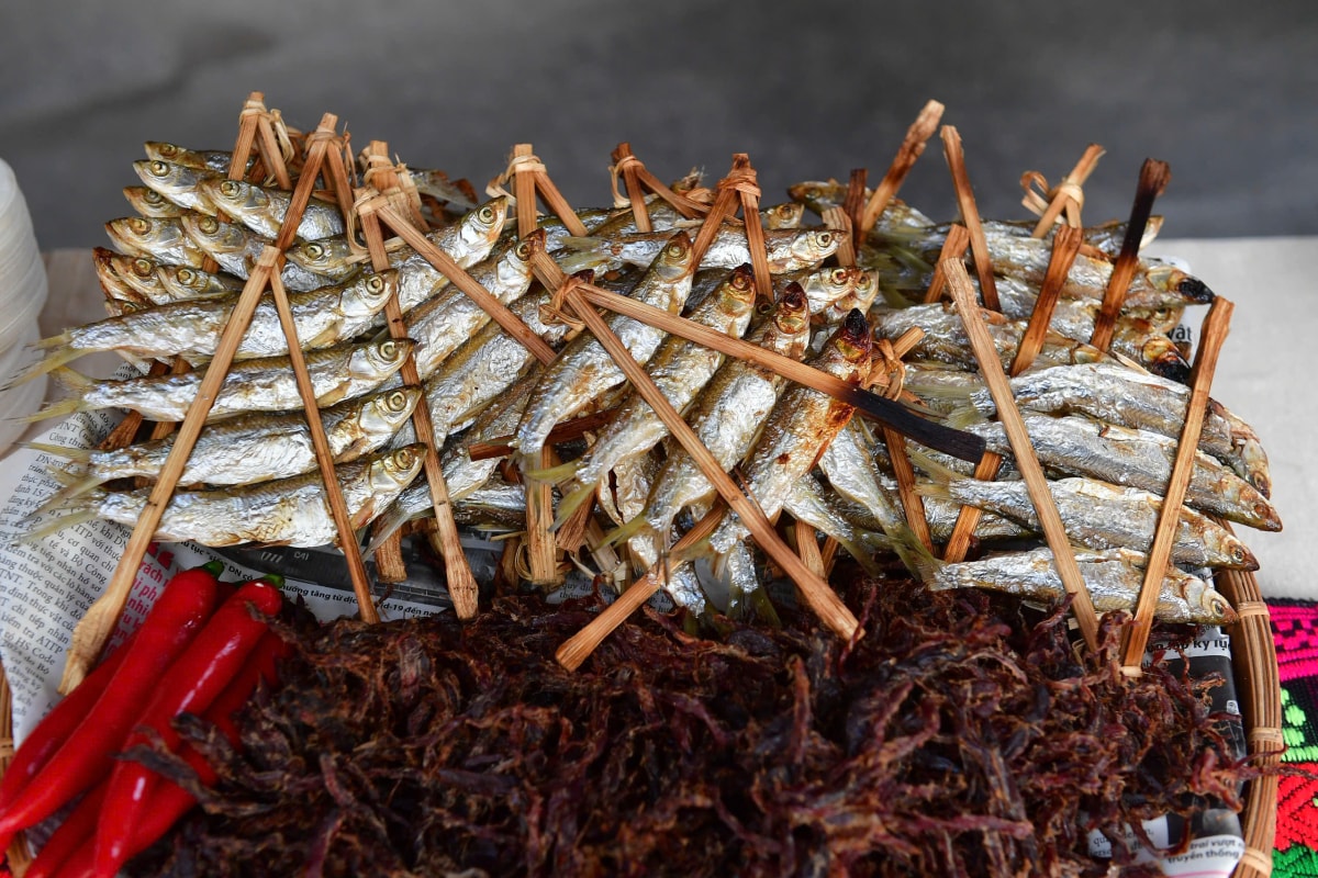 Một trong những gian hàng Thủy Tiên yêu thích và cũng hút nhiều thực khách trải nghiệm là Khách sạn Sài Gòn - Phú Thọ, thành viên Saigontourist Group. Đơn vị mang đến các món ngon đặc trưng bản địa, tận dụng cây cọ nguyên liệu cho hầu hết món ăn. Theo ông Trần Thanh Sơn, Tổng giám đốc khách sạn, Phú Thọ gắn với truyền thuyết Sơn Tinh - Thủy Tinh và những món ăn độc lạ dâng Vua Hùng như voi chín ngà, gà chín cựa, ngựa chín hồng mao...