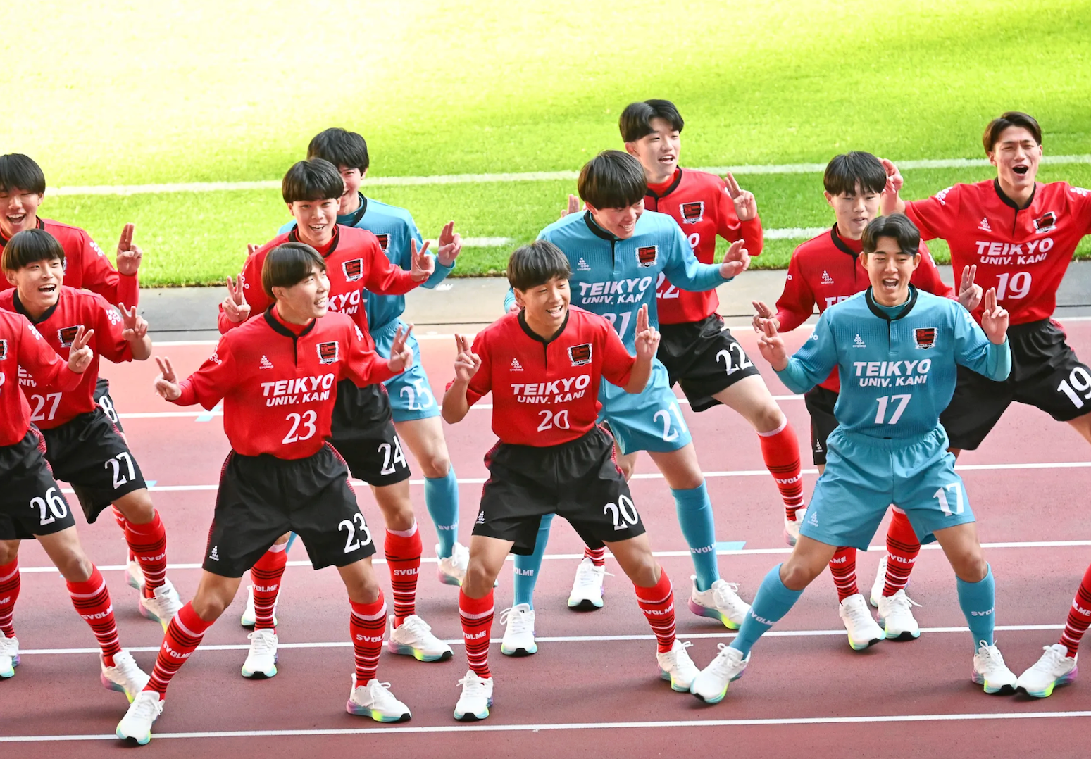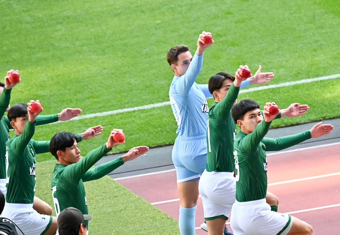 Maebashi Ikuei được dẫn đầu bởi đội trưởng Yuga Takenotani cầm lá cờ vô địch. Họ diễu hành mạnh mẽ, đồng đều và hô vang khẩu lệnh “một, hai”. Khi đi qua khán đài chính, các cầu thủ giơ cao một con búp bê Daruma màu truyền thống vàng đen. Búp bê này được lấy từ hình tượng đức Bồ Đề Đạt Ma, người sáng lập ra Phật giáo Thiền tông ở Trung Quốc.