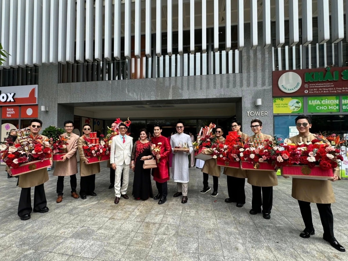 Sau lễ gia tiên, Quỳnh Châu lên xe hoa về nhà trai ở Đồng Nai. Tiệc cưới của họ sẽ diễn ra tối 26/10 tại một trung tâm tổ chức sự kiện, dự kiến đón hàng trăm sao tham dự.