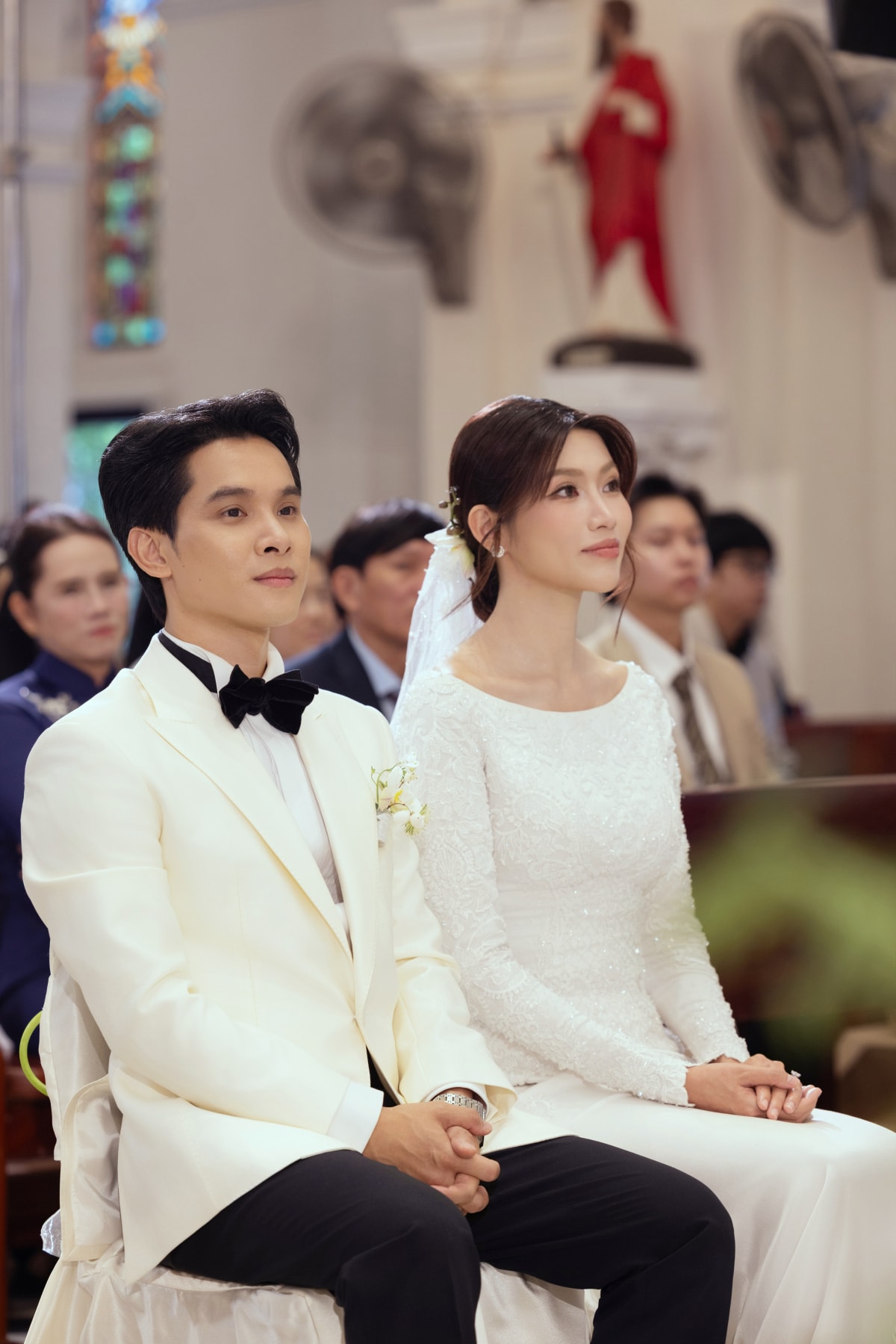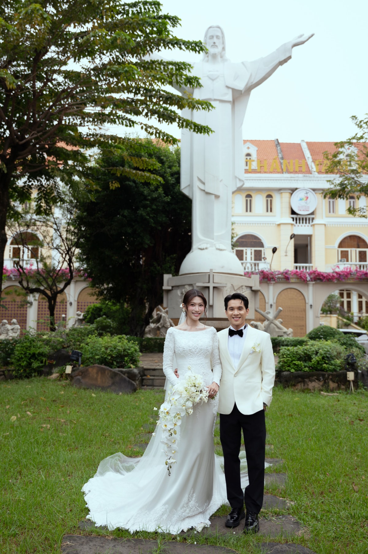 Sáng cùng ngày, vợ chồng Quỳnh Châu làm lễ hôn phối tại Nhà thờ Tân Định. Họ thức dậy từ sớm, cùng gia đình hai bên đến địa điểm để thực hiện các nghi thức truyền thống Công giáo khi kết hôn.
