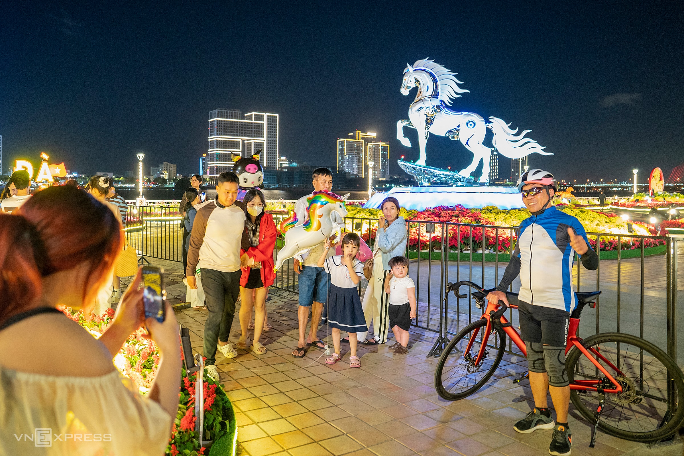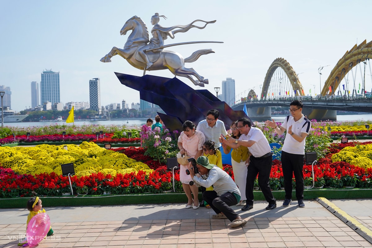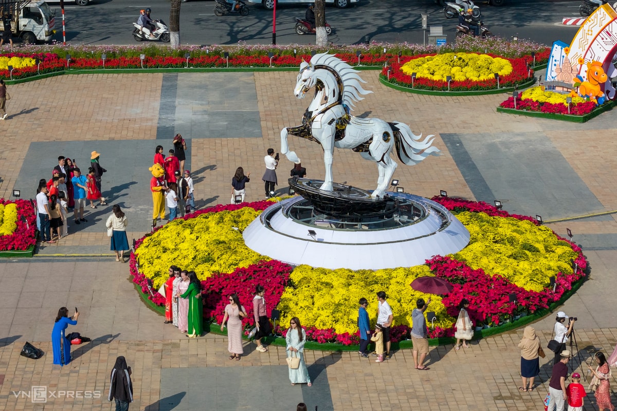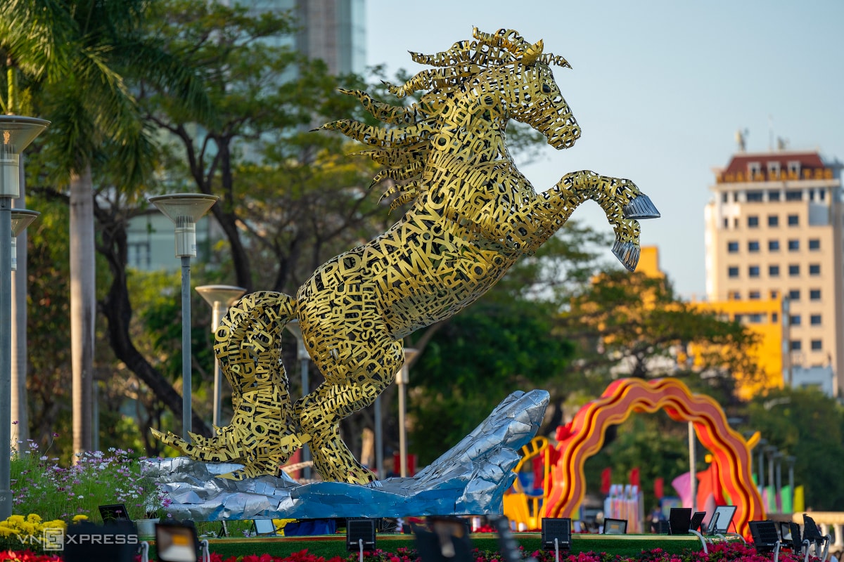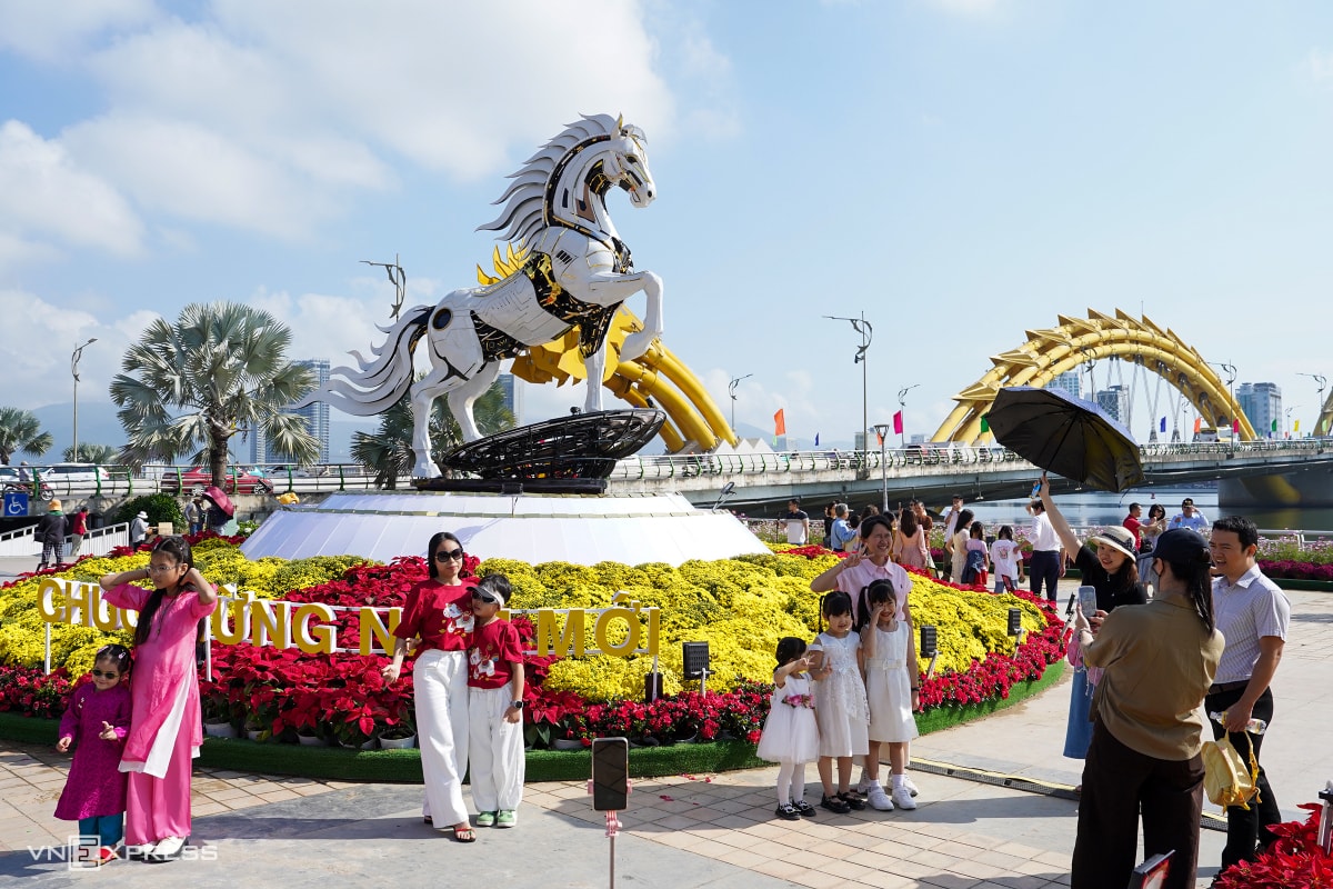 Linh vật 'Kim mã 4.0' tạo điểm nhấn trên đường hoa Tết Đà Nẵng