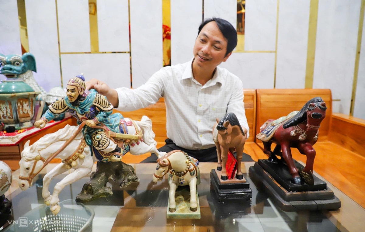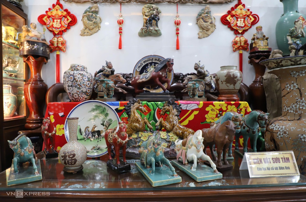 Bộ sưu tập ngựa bằng gốm của anh Nam với hàng chục linh vật đa dạng hình thức, niên đại, phong cách tạo hình với chủ yếu các dòng gốm Cây Mai, Thành Lễ, Biên Hòa. "Có chiến mã dáng khỏe, cổ cao... thể hiện tinh thần mạnh mẽ, bền bỉ nhưng cũng có những chú ngựa hiền lành trong đời sống thường ngày", nhà sưu tập nói.