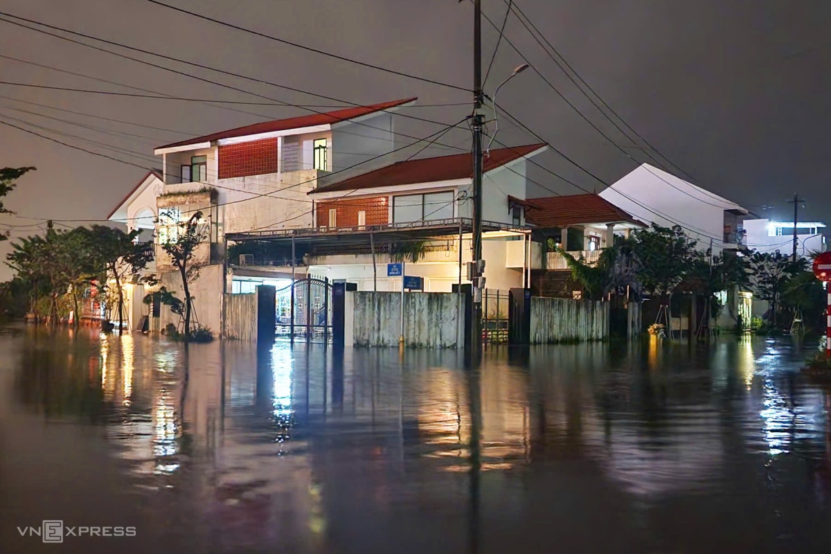 Nước lũ về nhanh trong đêm khiến nhiều khu dân cư ven sông Hương, Như Ý, Đông Ba và các tuyến đường trung tâm thành phố bị ngập, nơi sâu nhất một mét.