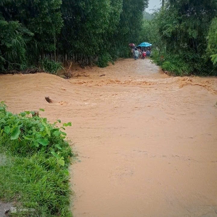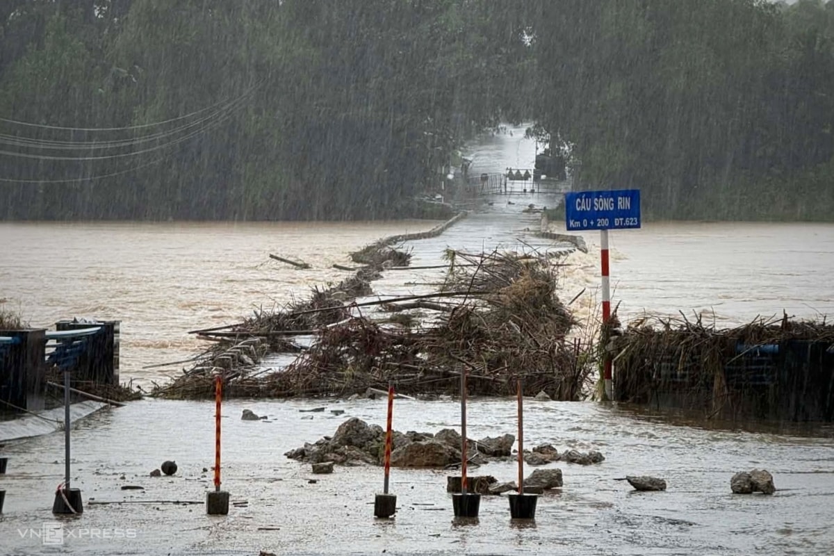 Nhà cửa, xe chìm trong nước, cầu bị cuốn trôi, người dân mắc kẹt, giao thông chia cắt... trong đợt lũ dâng cao từ Huế tới Quảng Ngãi.