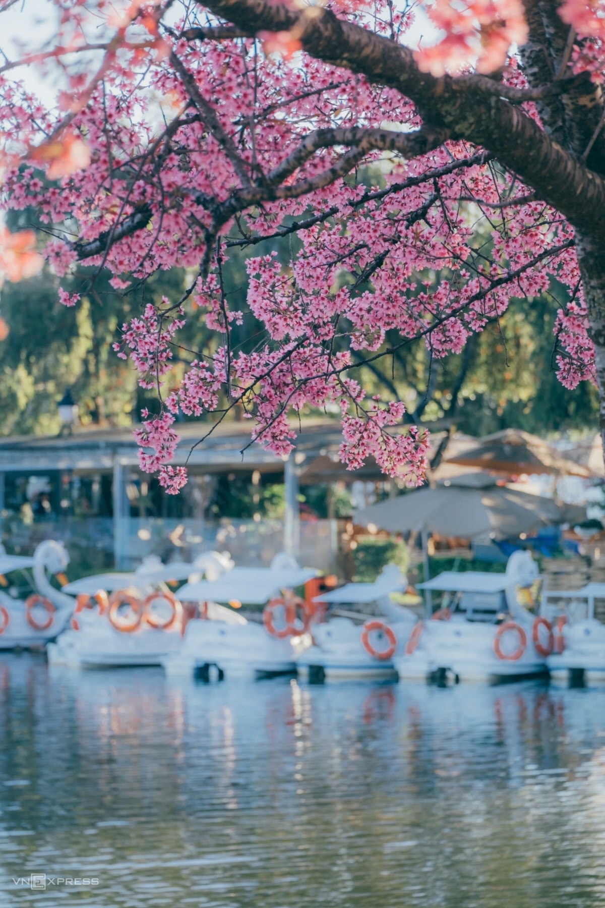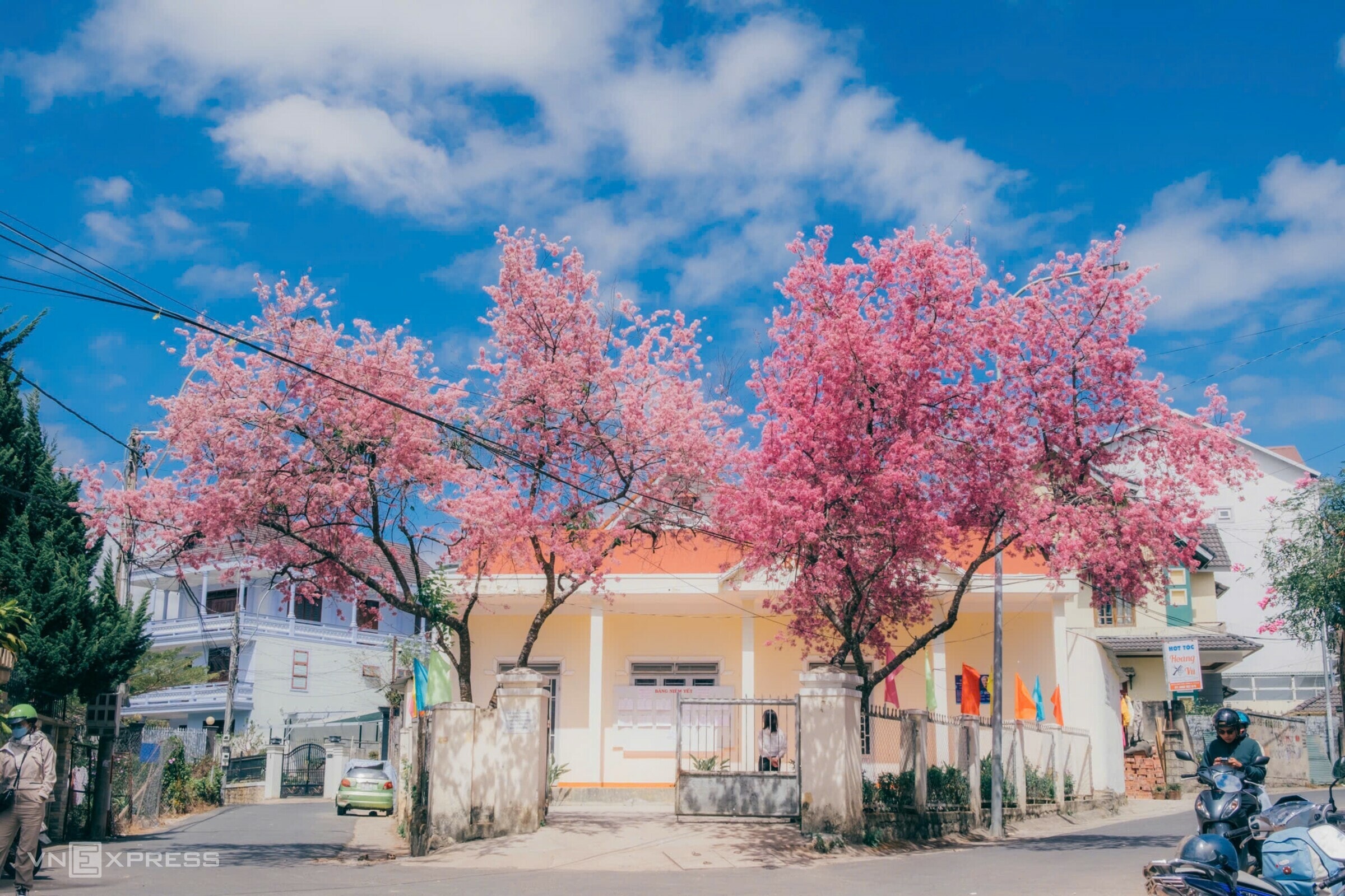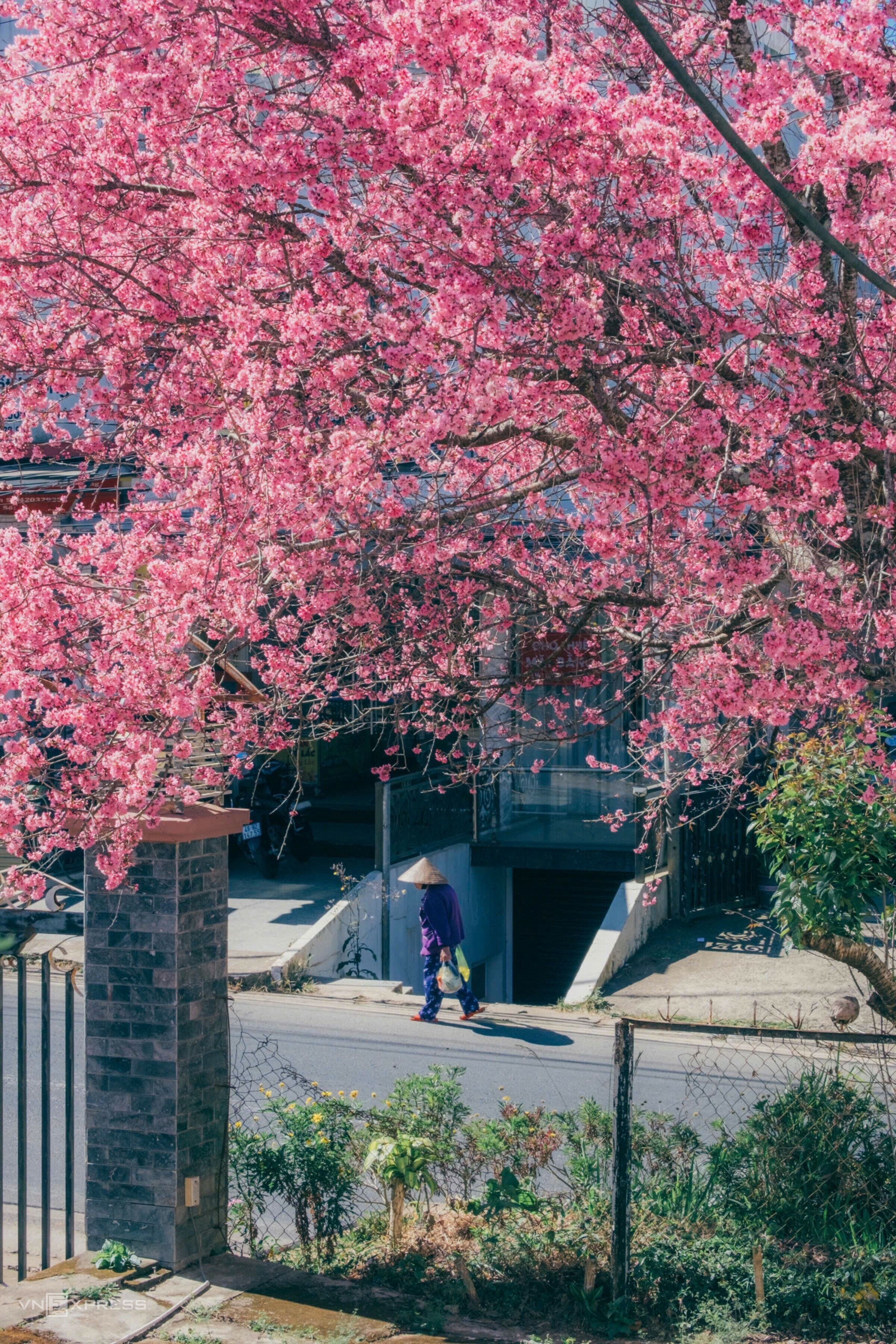 Hàng nghìn cây mai anh đào nở rộ từ trung tâm đến ngoại ô, nhuộm hồng nhiều tuyến đường ở phố núi Đà Lạt.