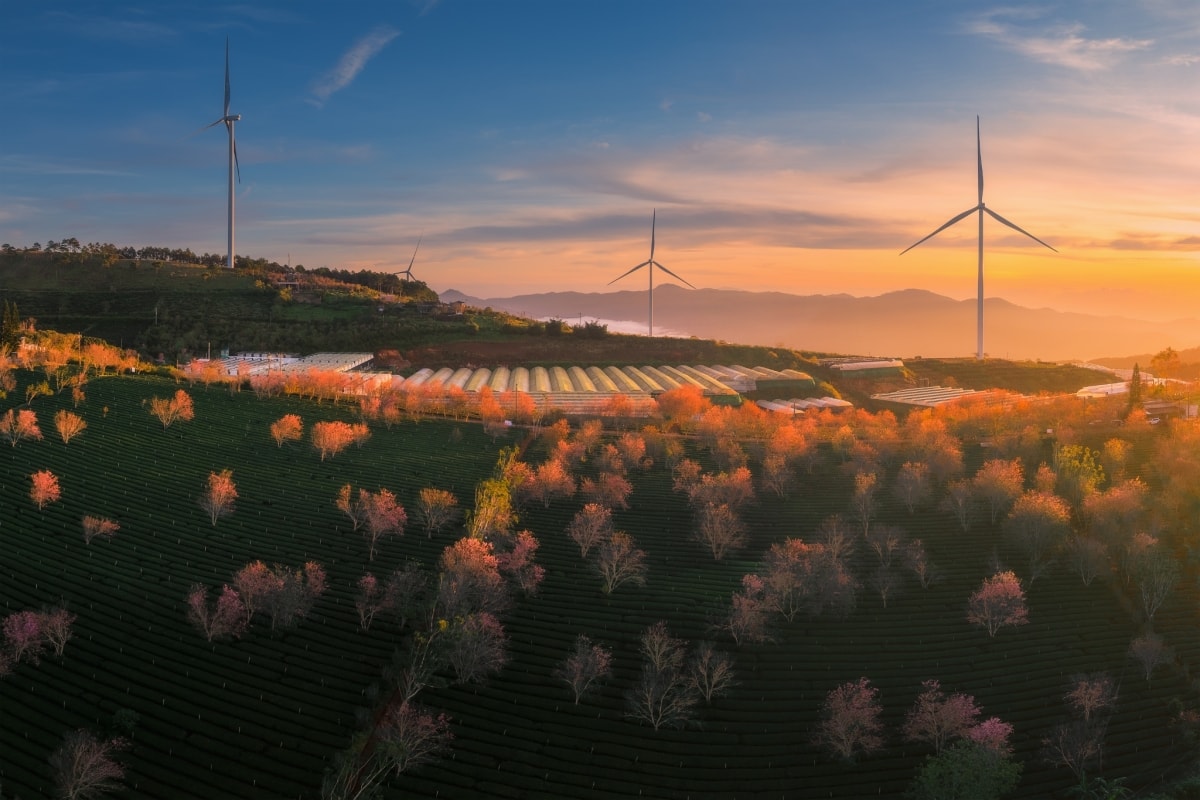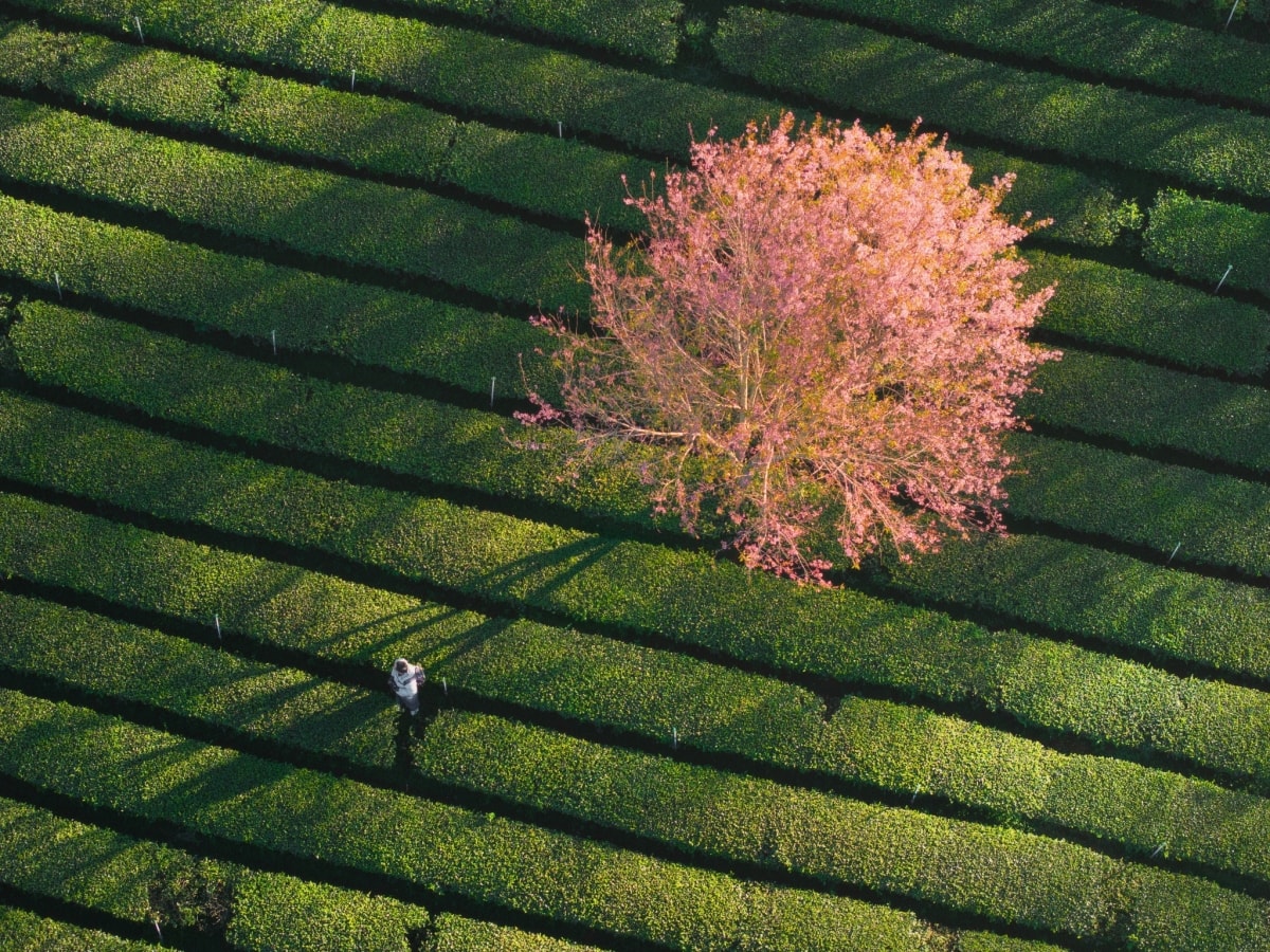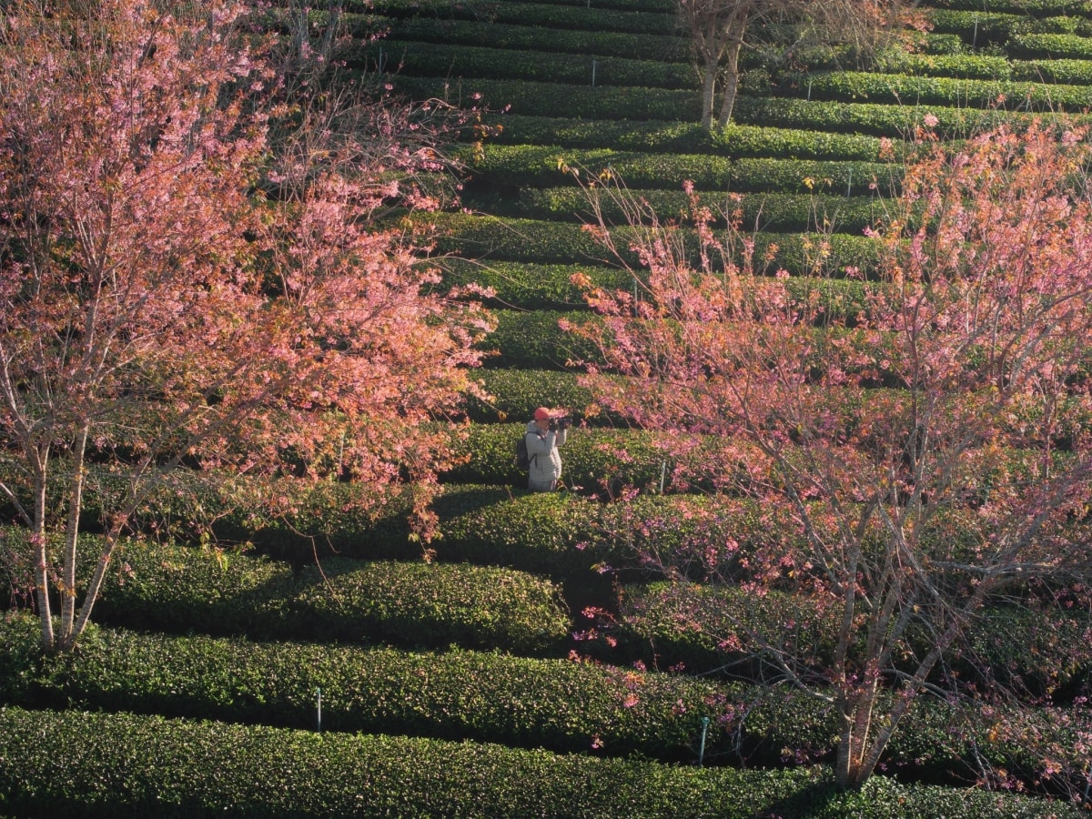 Mai anh đào ở đồi chè Cầu Đất nở rộ, đẹp nhất từ đầu tháng 1, tạo thành điểm nhấn thiên nhiên đón xuân trên cao nguyên Đà Lạt.