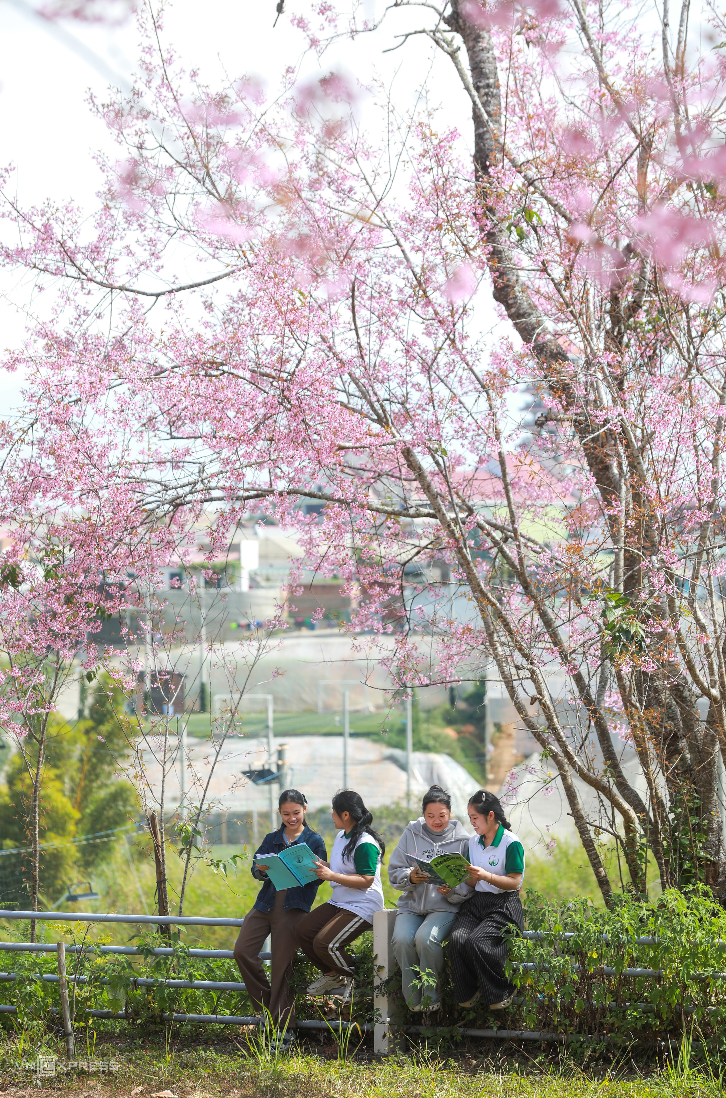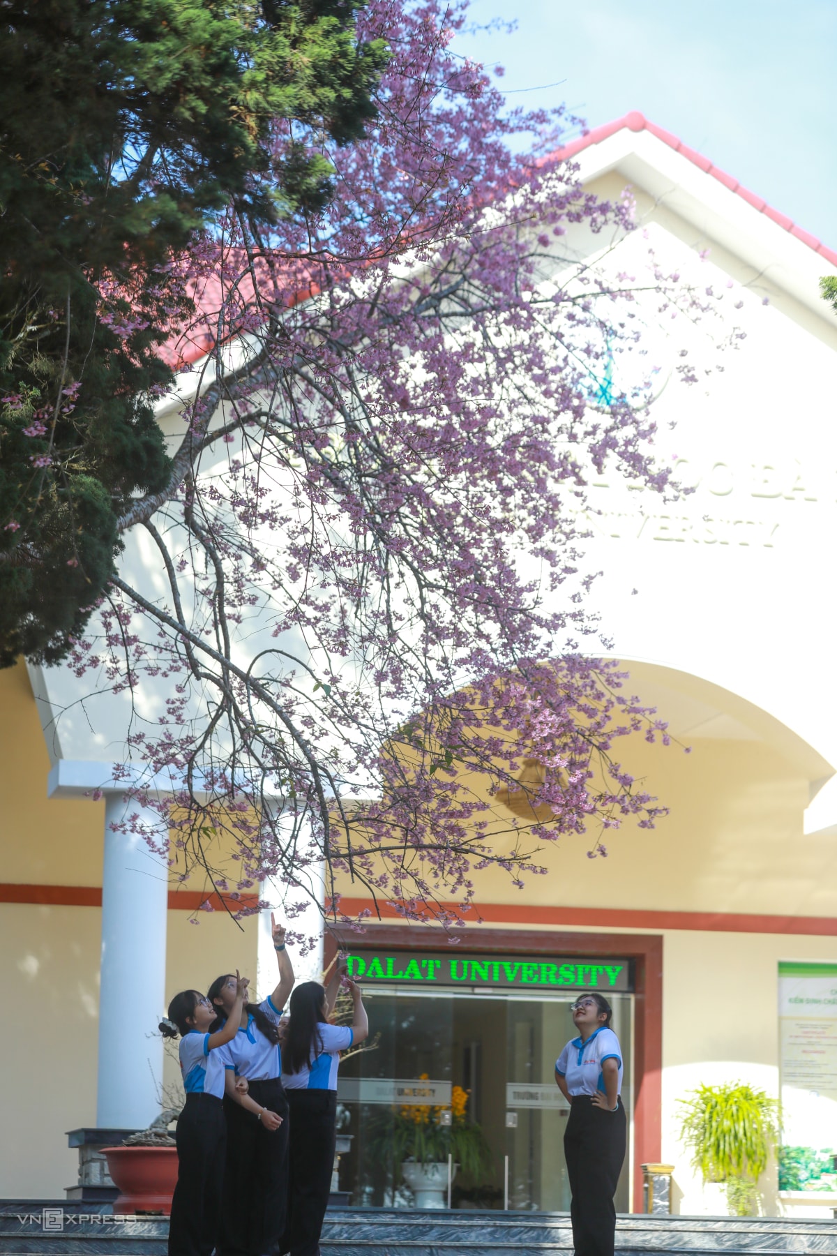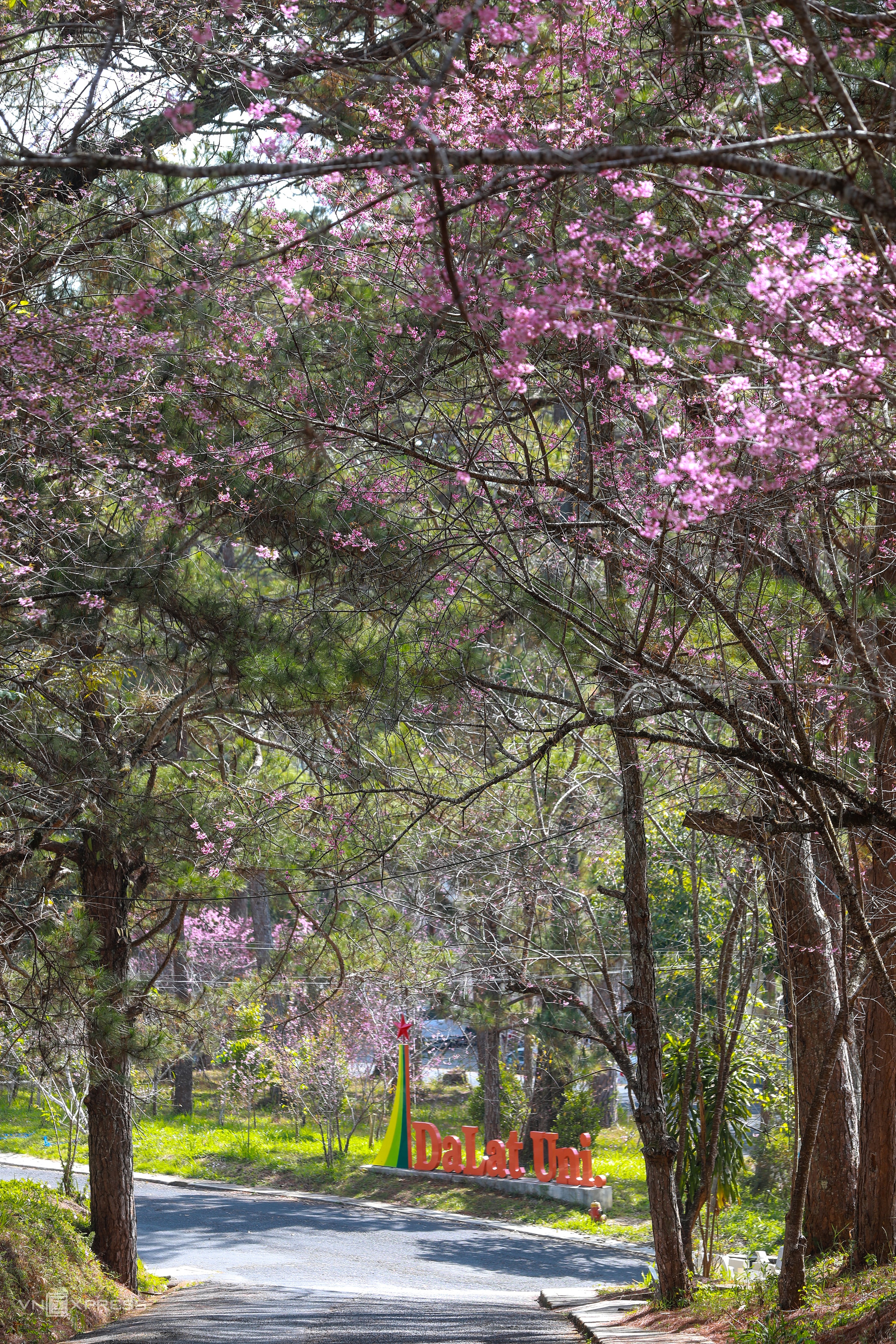 Mai anh đào nở rộ trong khuôn viên, khiến đường đến giảng đường của sinh viên trường Đại học Đà Lạt thêm phần thơ mộng.