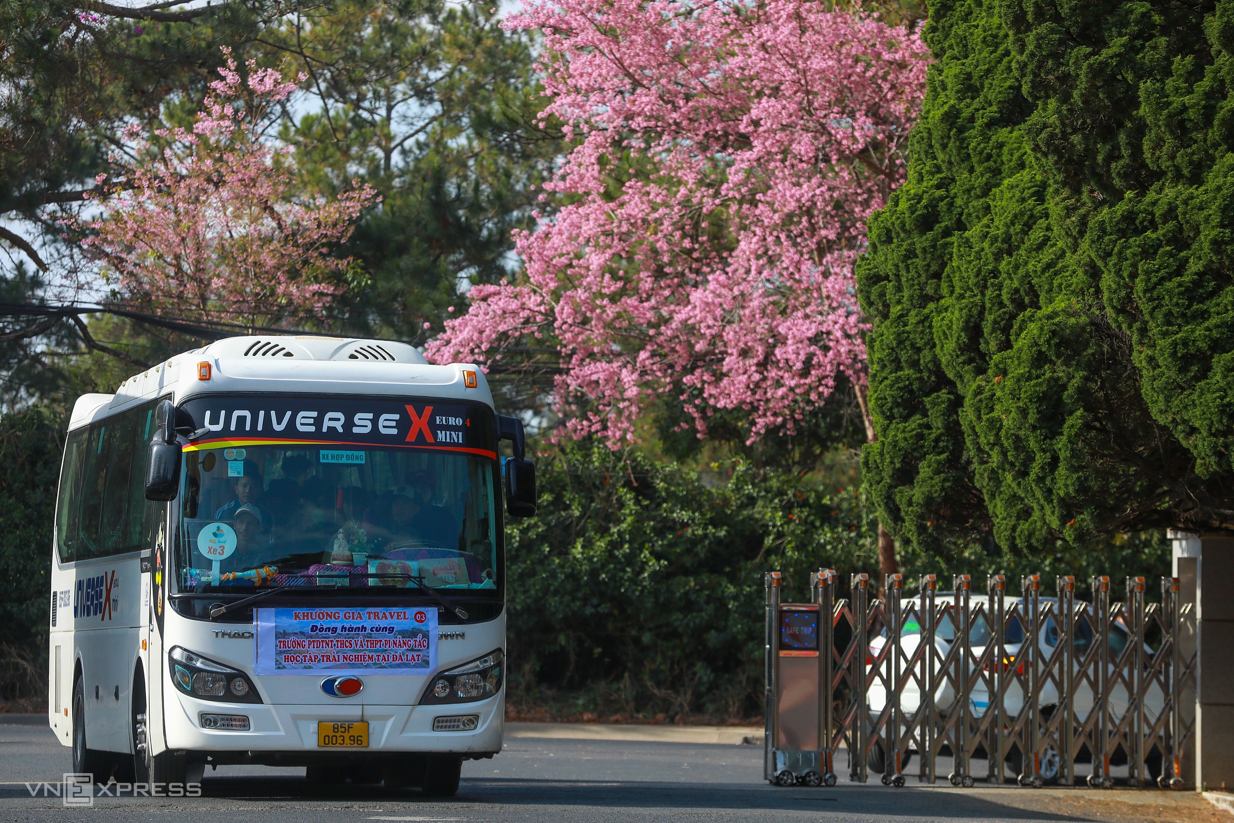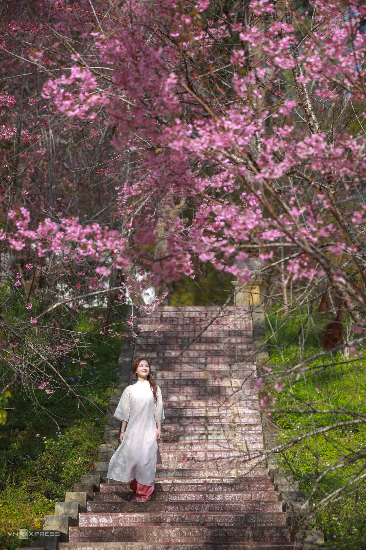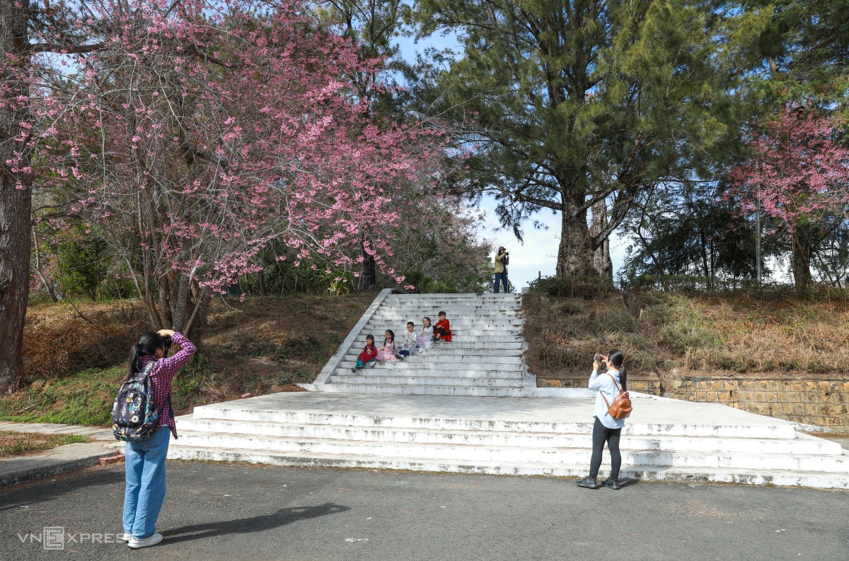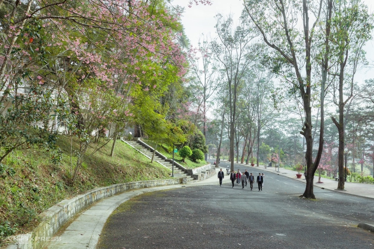 Mai anh đào nở rộ trong khuôn viên, khiến đường đến giảng đường của sinh viên trường Đại học Đà Lạt thêm phần thơ mộng.