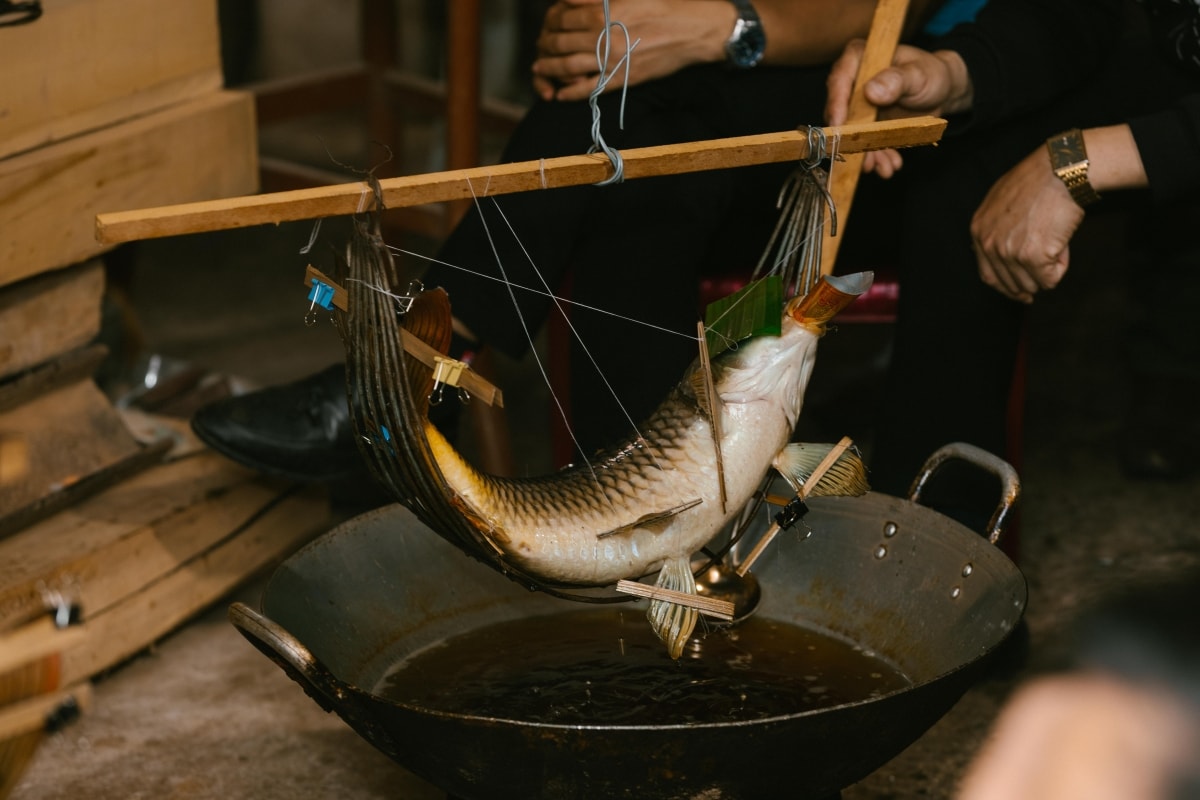 Mâm cỗ cá 'nằm võng' tại làng cổ 600 tuổi ở Hưng Yên