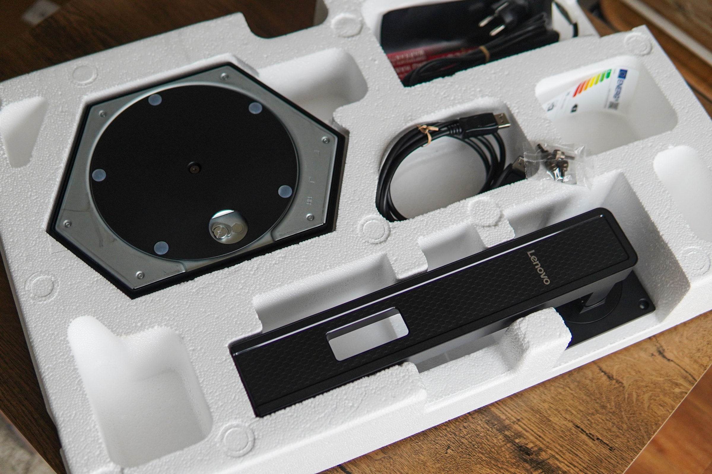 Lenovo vẫn sử dụng cách kết nối giá đỡ bằng bốn con vít thay vì dùng cơ chế lẫu để tháo lắp nhanh. Việc chịu lực cho màn hình nặng khoảng 6 kg này phụ thuộc hoàn toàn vào bốn con vít, đòi hỏi người dùng cần phải vít chặt ngay từ đầu. Quá trình lắp đặt cần sử dụng tua vít hoặc vặn tay thủ công các con ốc này khiến quá trình lắp đặt ban đầu mất thời gian hơn và thiếu đi sự linh hoạt khi cần tháo lắp, di chuyển.