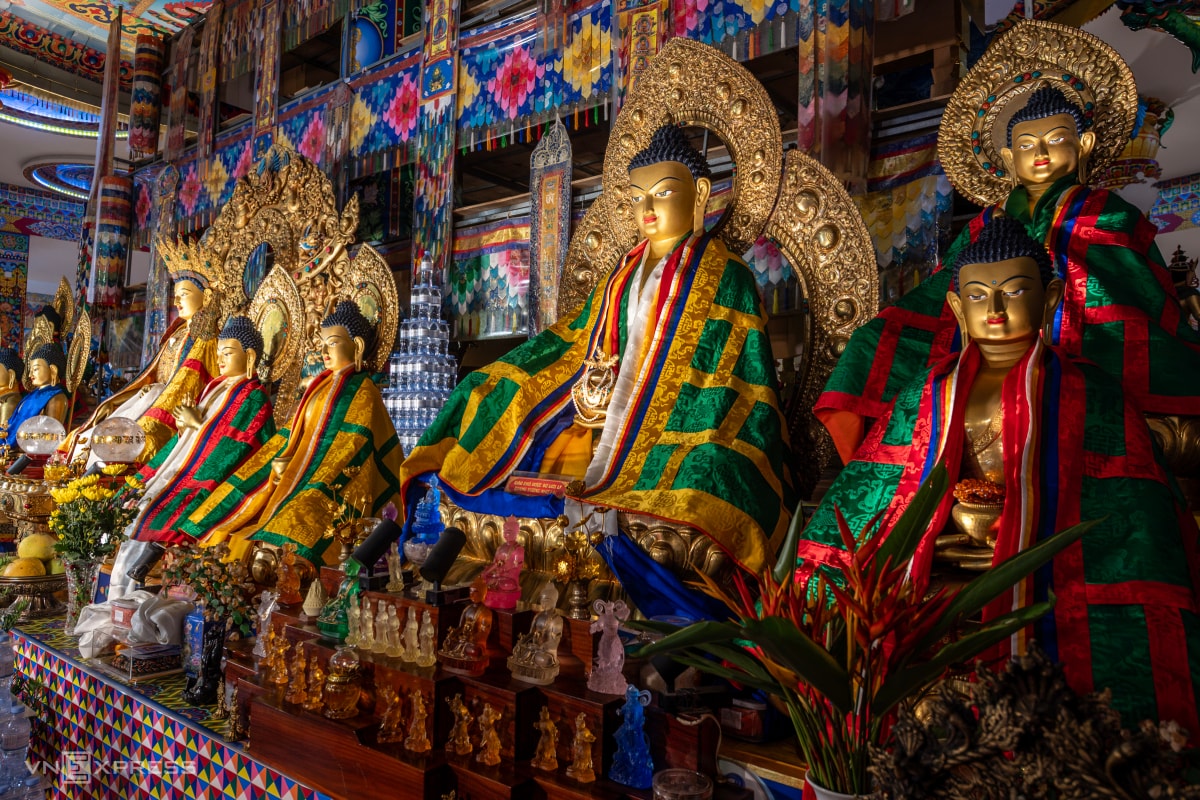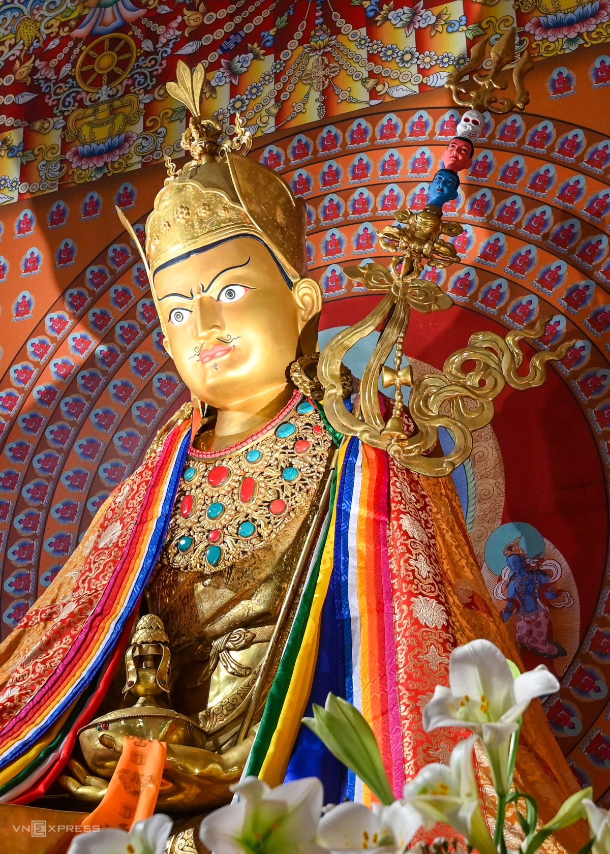 Tượng Phật Liên Hoa Sinh đặt hướng tây bắc - vị Phật "mở đường" cho Kim cương thừa vùng Himalaya hàng nghìn năm trước. Đức Liên Hoa Sinh được coi là hóa thân của Phật A Di Đà và Phật Thích Ca, hiện thân hợp nhất của Từ bi và Trí tuệ.