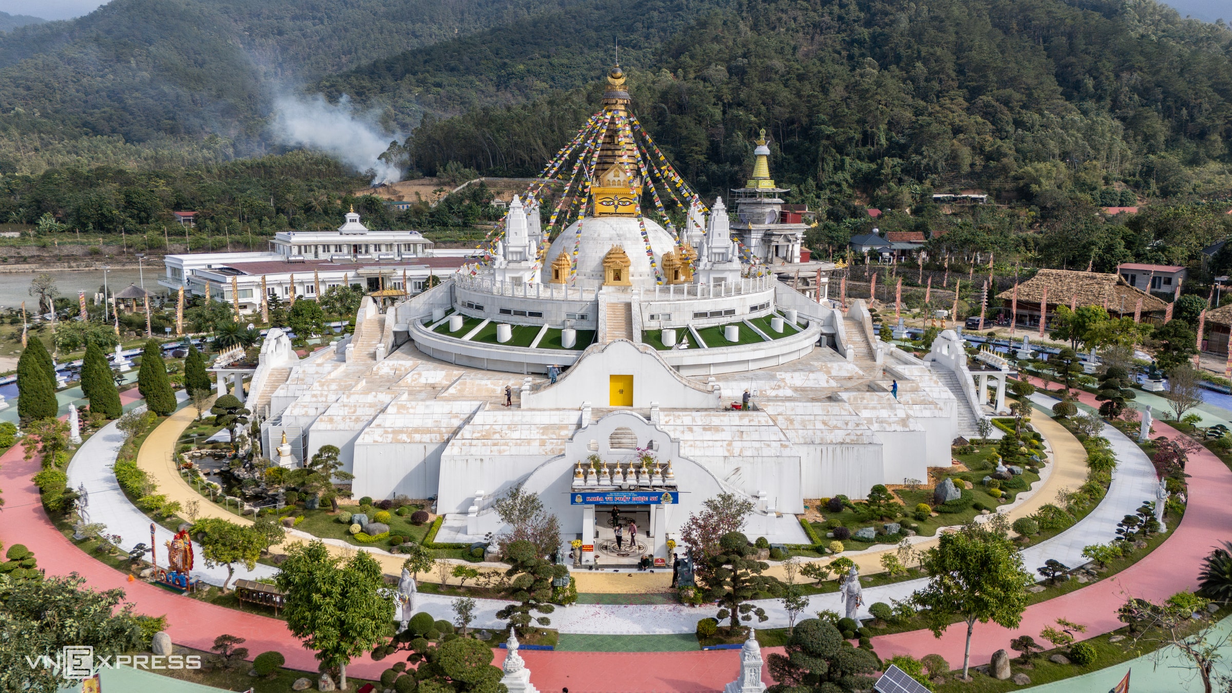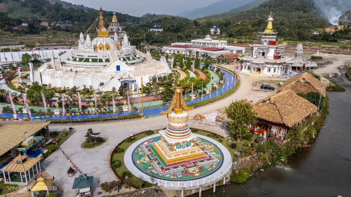 Đại bảo tháp Kim cương thừa lớn nhất Việt Nam tái hiện 5 yếu tố cấu thành vũ trụ, giúp người tham quan “đọc” triết lý nhà Phật qua hình khối và không gian trải nghiệm.