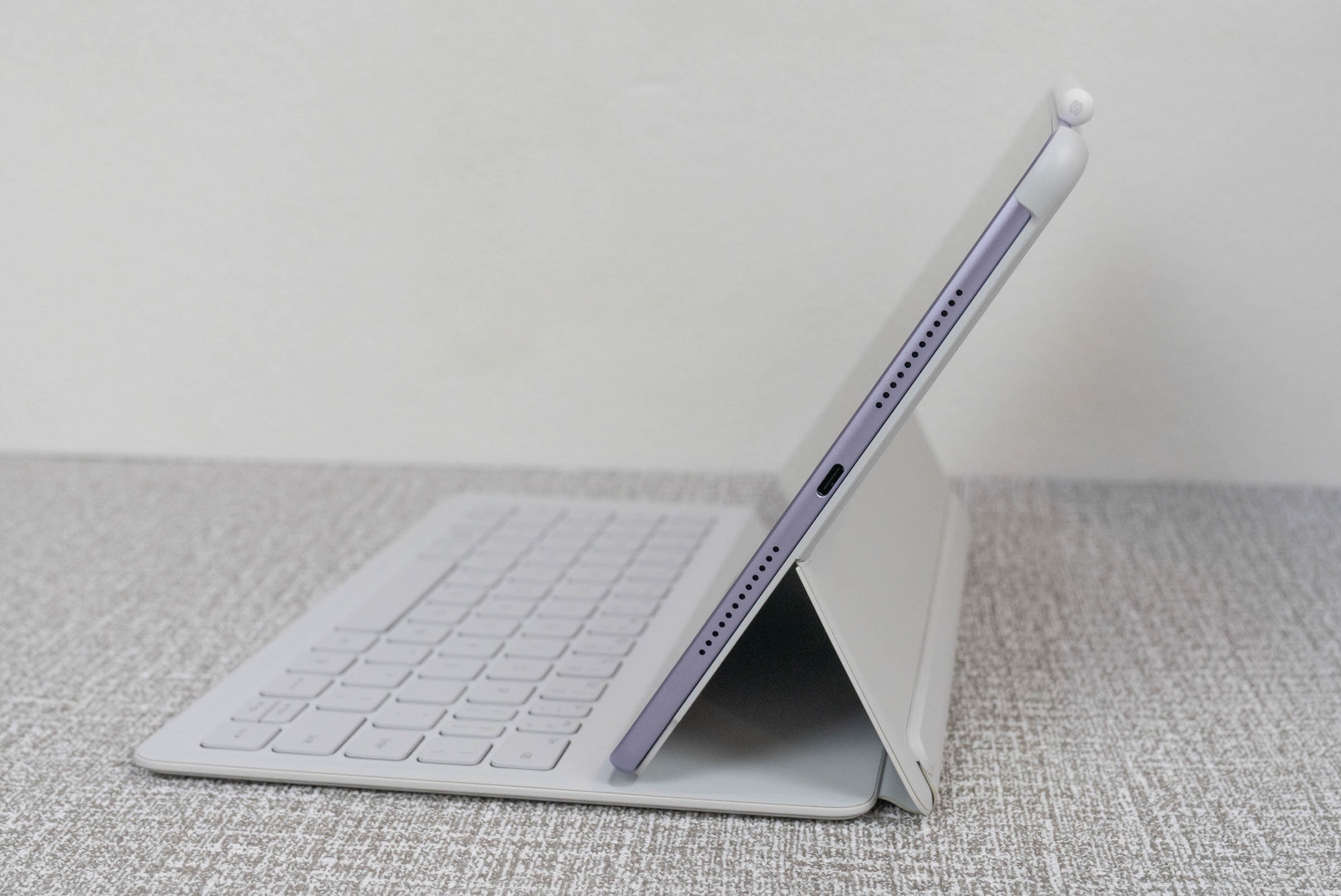 Bàn phím đi kèm có kích thước phím tương tự laptop cùng hành trình 1,5 mm nên cho cảm giác gõ và phản hồi tốt. Tuy nhiên, do kích thước nhỏ, máy thiếu bàn di chuột và các phím chức năng. Người dùng nên sử dụng chuột để có trải nghiệm tốt nhất.