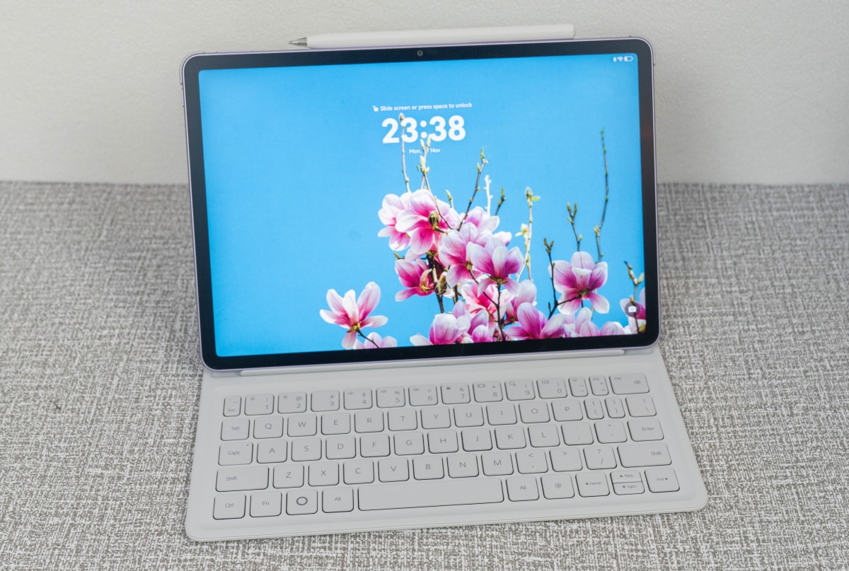 Tablet tầm trung trang bị màn hình nhám của Huawei trang bị pin 10.100 mAh, hỗ trợ bàn phím, bút, chuột và WPS Office giống laptop.