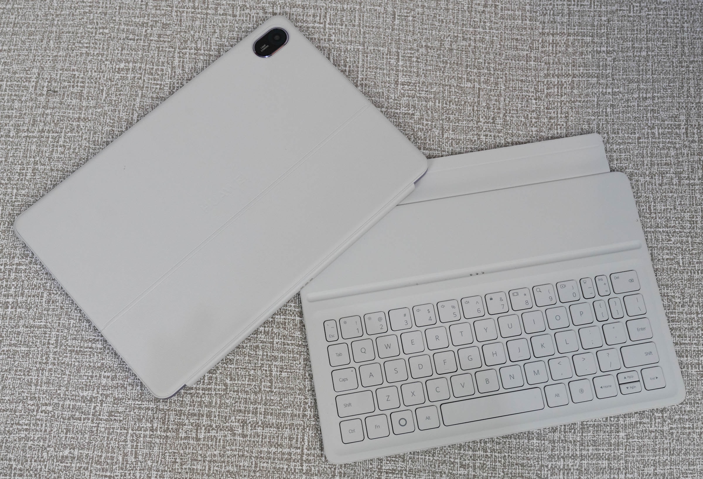 MatePad 11.5 PaperMatte 2025 có hai màu tím và xám. Bản màu tím có case bảo vệ trắng còn màu xám dùng case đen. Case bảo vệ tích hợp bàn phím của máy mỏng nhẹ hơn trước với chất liệu giả da mềm. Thiết kế case bảo vệ mới đưa chỗ gắn bút lên cạnh trên, thay vì mặt sau, để có thể sạc không dây tiện hơn. Bàn phím và case có thể tách rời để sử dụng riêng.