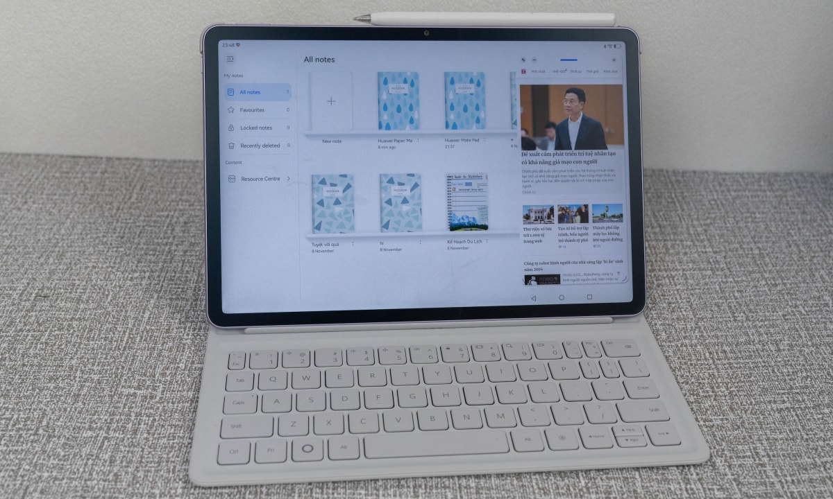 Ứng dụng Notes có thêm tính năng tối ưu viết tay bằng AI và Trung tâm Tài nguyên để quản lý ghi chú thuận tiện. Huawei cũng hỗ trợ phần mềm vẽ chuyên dụng GoPaint giống các model cao cấp của hãng.