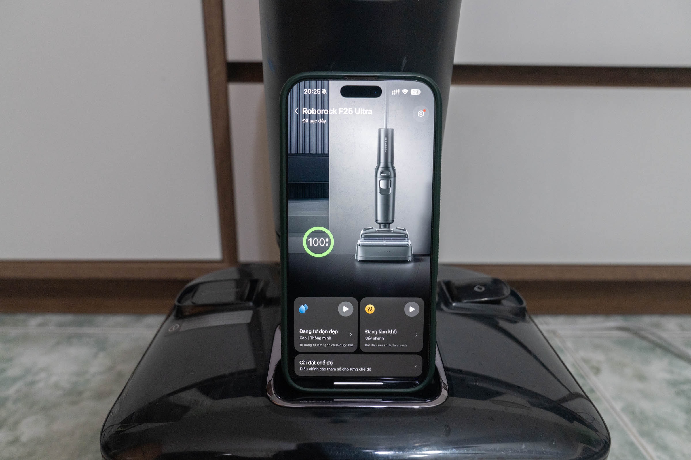 Các nút bấm trên tay cầm dùng để điều chỉnh chế độ hoạt động, còn ứng dụng Roborock trên smartphone cho phép người dùng chọn chế độ làm sạch, tùy chỉnh lực hút và điều khiển máy di chuyển ở chế độ nằm ngang.