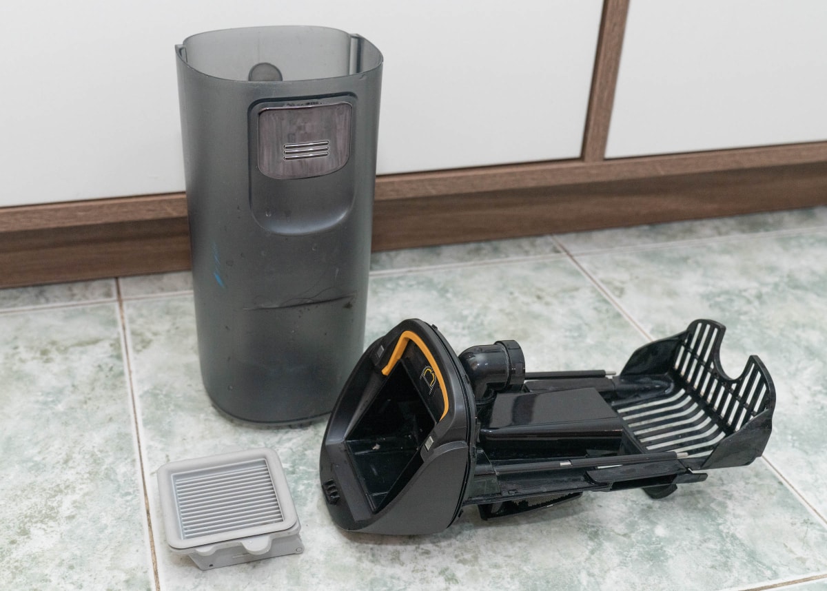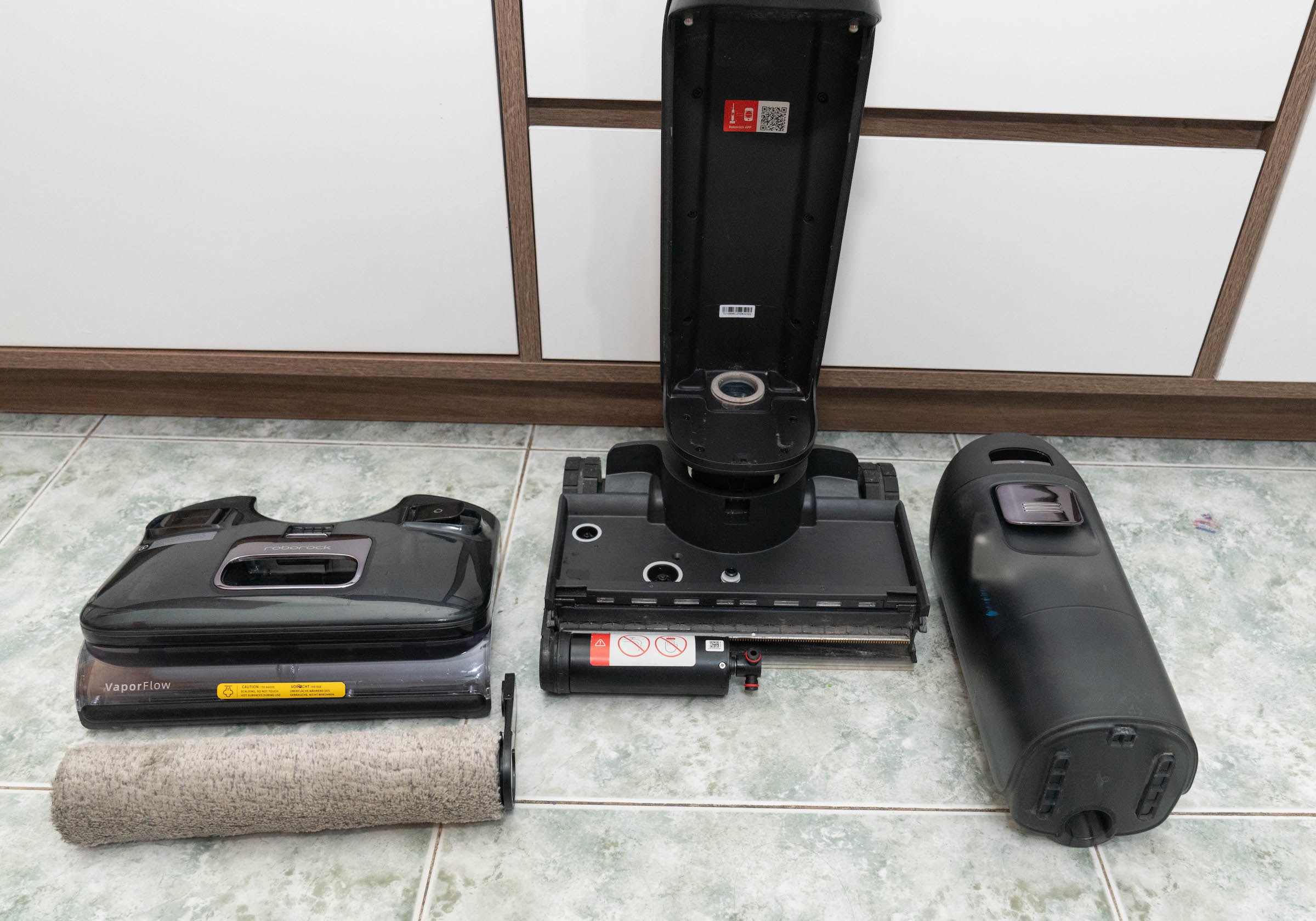 Lực hút của máy lên tới 22.000 Pa - mức cao nhất trên các mẫu máy lau nhà cầm tay hiện nay, đủ để hút sạch bụi mịn, tóc, lông thú và mảnh vụn lớn. Bình nước sạch được chuyển xuống phần đế lau giúp giảm trọng lượng tay cầm và tăng lực ép con lăn để làm sạch tốt hơn. Hộp chứa có thêm một ngăn nhỏ cho dung dịch lau sàn. Thiết bị sẽ tự pha dung dịch và nước sạch, một lần đổ đầy có thể sử dụng 30 ngày.