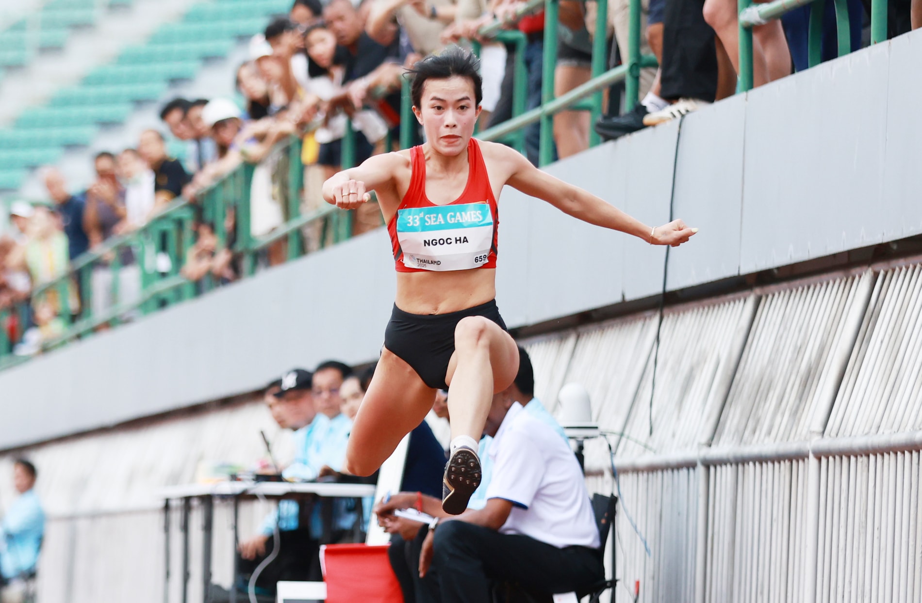 Dù chấn thương gót chân, Vũ Thị Ngọc Hà vẫn cắn răng thi đấu để giành HC đồng nội dung nhảy ba bước ở SEA Games 33.