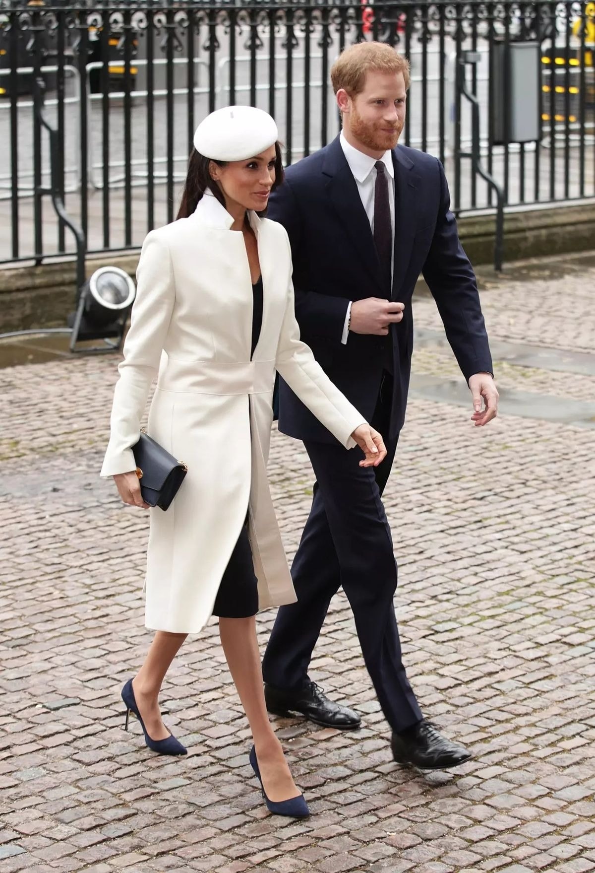 Cùng năm, khi tham gia lễ kỷ niệm thường niên của Khối thịnh vượng chung các quốc gia tại Tu viện Westminster, cô chọn áo khoác 1.199 USD (31,5 triệu đồng) và váy của thương hiệu Anh Amanda Wakeley. Người đẹp mang giày cao gót màu xanh navy ăn ý túi Mulberry, đội mũ Stephen Jones. Ảnh: Celebmafia