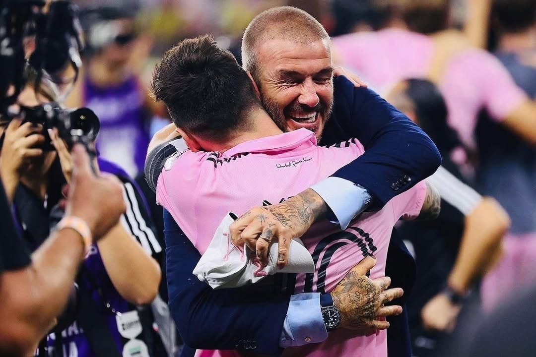 Chủ tịch David Beckham cùng tiền đạo Lionel Messi ăn mừng chức vô địch MLS Cup - thành quả lớn nhất trong lịch sử Inter Miami.