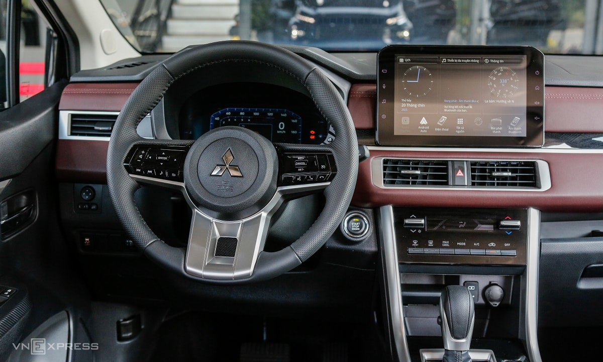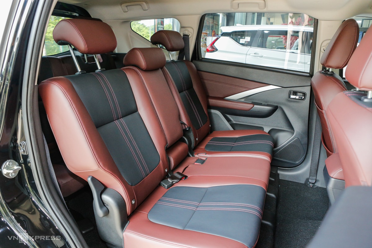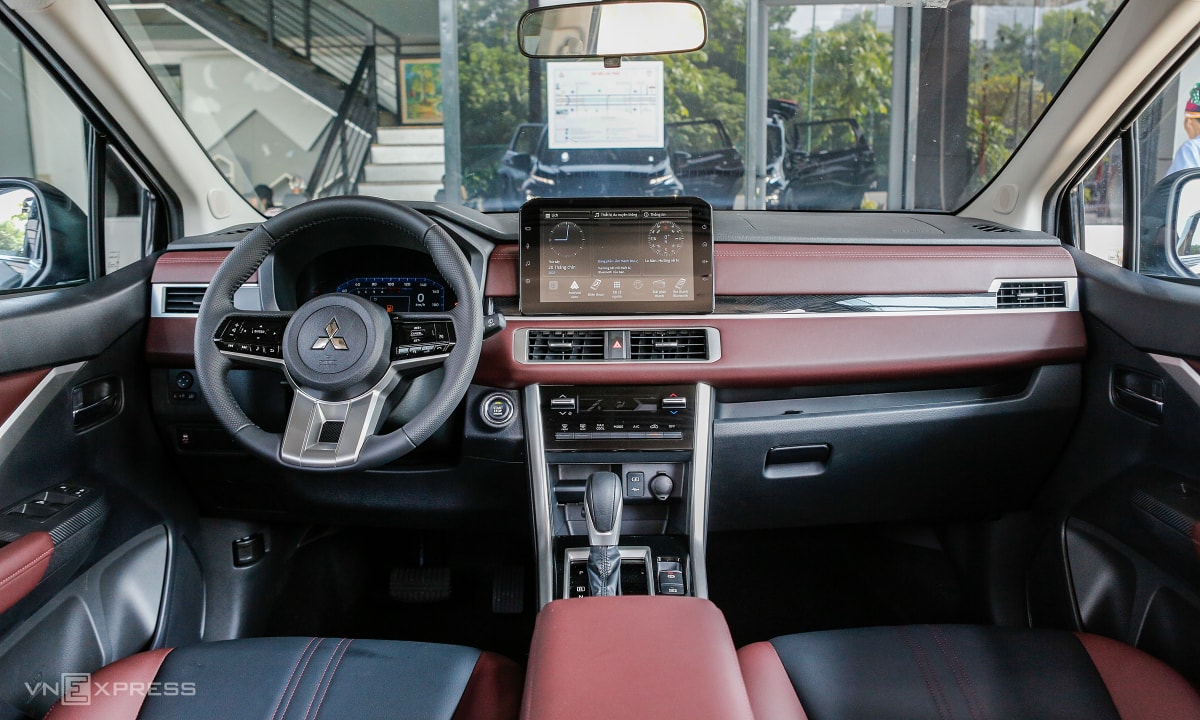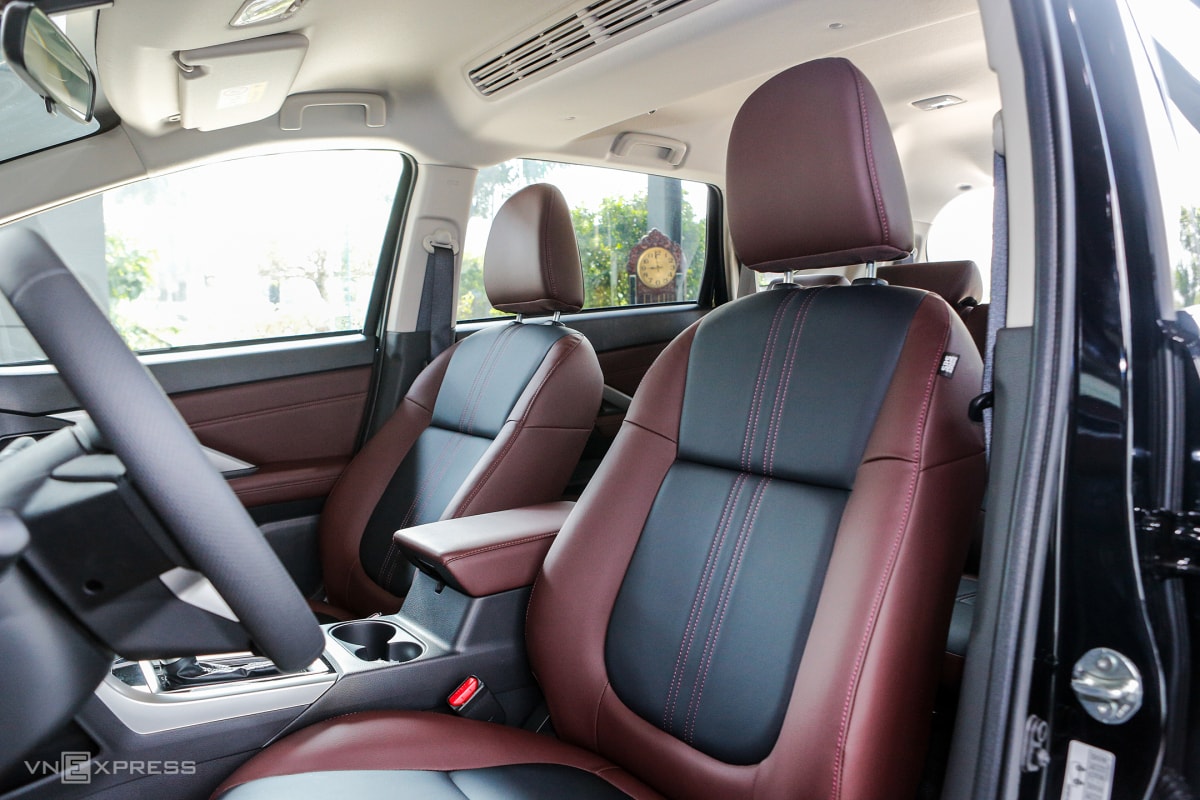 Giống như bản AT Premium, Xpander Cross thiết kế lại nội thất. Xe bọc da hai tông màu đỏ-đen và trang trí với chỉ khâu tương phản.