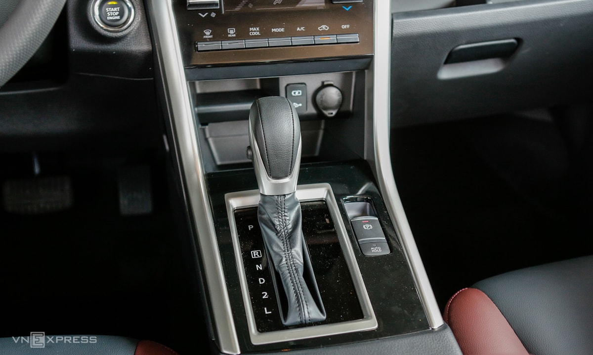 Cụm cần số bọc da. Xe trang bị phanh tay điện tử, hỗ trợ giữ phanh tự động Auto Hold.