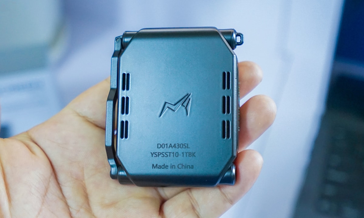 Cạnh trái đặt cổng USB-C duy nhất kèm phần viền sơn xanh tạo điểm nhấn, trong khi cạnh phải được vát tam giác, giúp đường nét tổng thể đậm chất game. Nhà sản xuất cho biết ST10 có khả năng chống chịu va đập chuẩn quân đội, nhưng không có tính năng chống nước. Do dùng màn hình cảm ứng, thiết bị không có đèn báo như các loại ổ cứng di động đang có mặt trên thị trường.