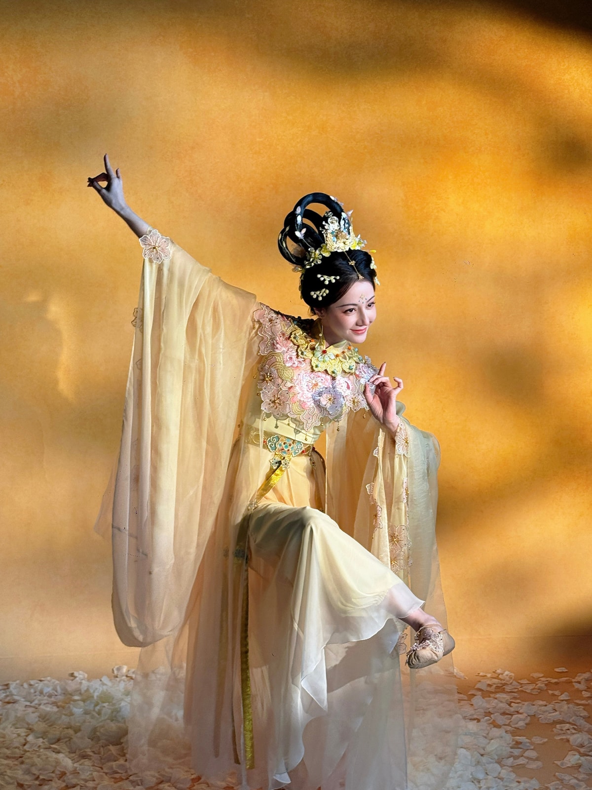 Diễn viên Trung Quốc Địch Lệ Nhiệt Ba diễn điệu múa tiên nữ rải hoa trên cung trăng, dịp Trung thu.